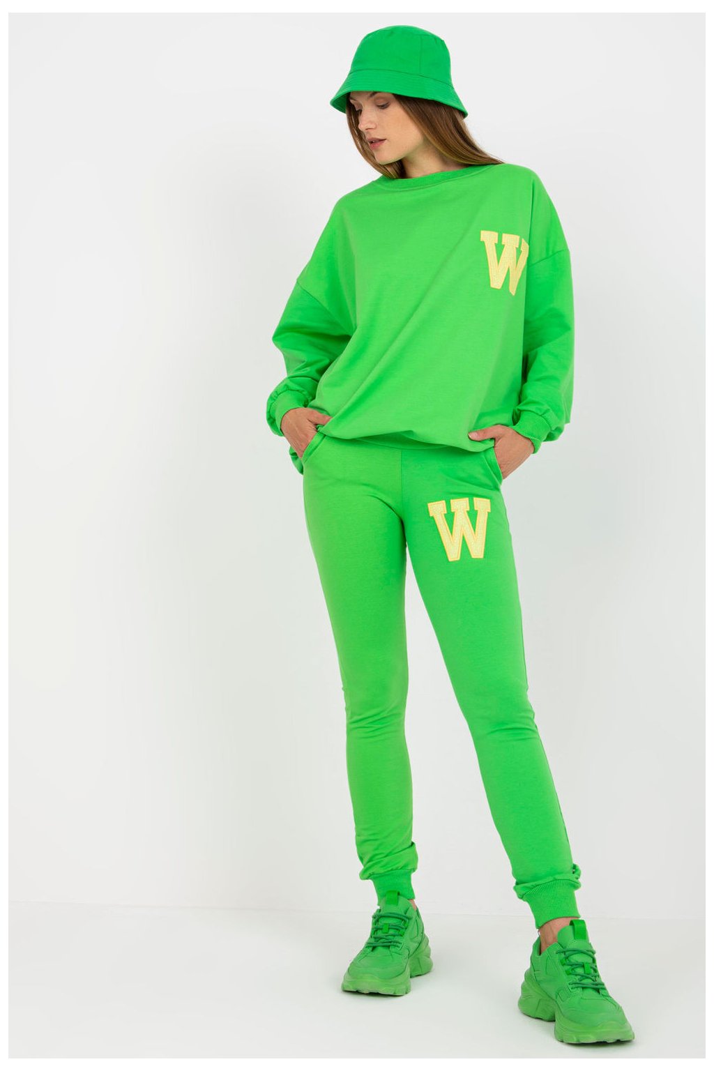 Tepláková souprava sestávající z mikiny a dlouhých kalhot. Volná mikina s dlouhými rukávy. Ozdobná nášivka na přední straně. Dlouhé kalhoty s pružným pasem a nakládanými kapsami.