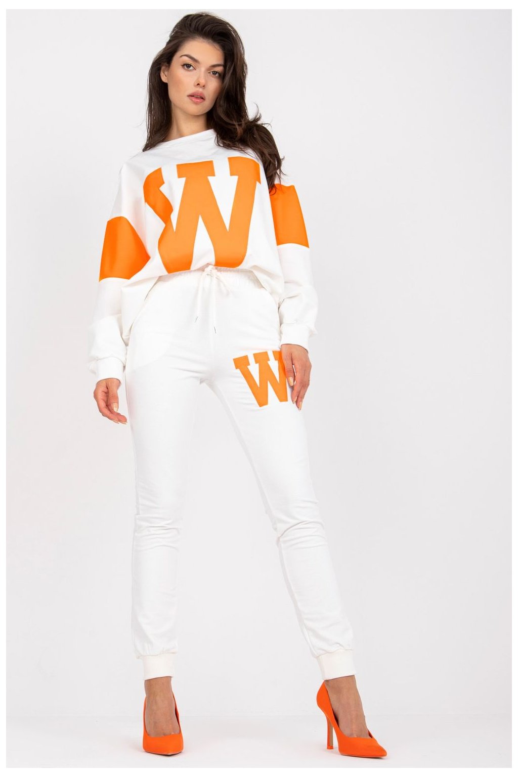 Dámská tepláková souprava sestávající z mikiny a dlouhých kalhot. Volná mikina s dlouhými rukávy. Dlouhé kalhoty přiléhavého střihu se šňůrkami v pase a kapsami na bocích.