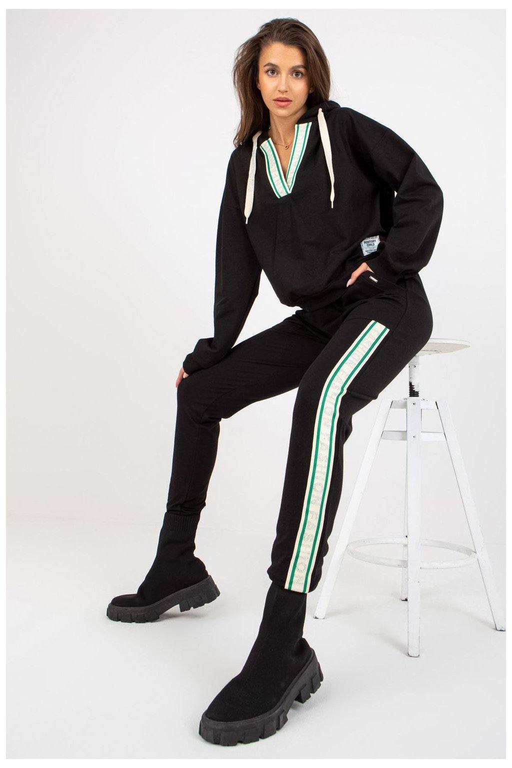 Tepláková souprava sestávající z mikiny a kalhot. Mikina s dlouhými rukávy a kapucí. Dlouhé kalhoty se zavazováním v pase a nakládanými kapsami.