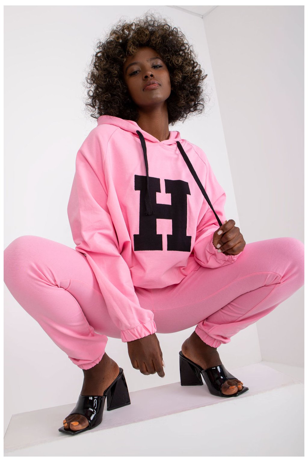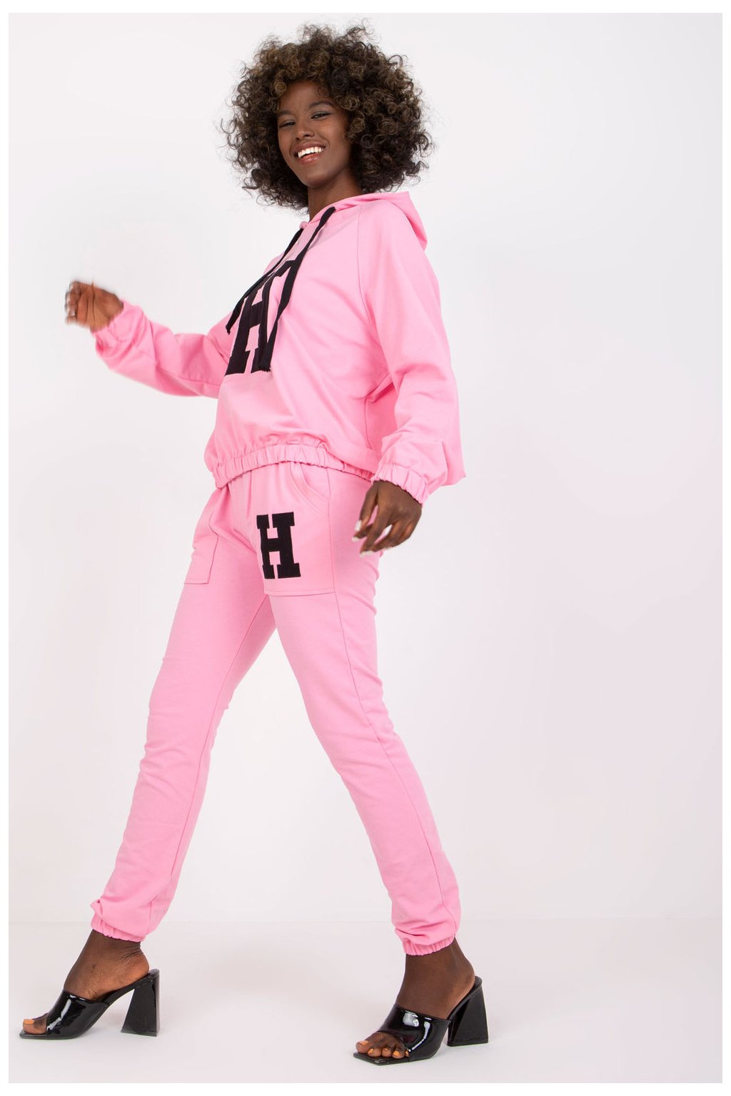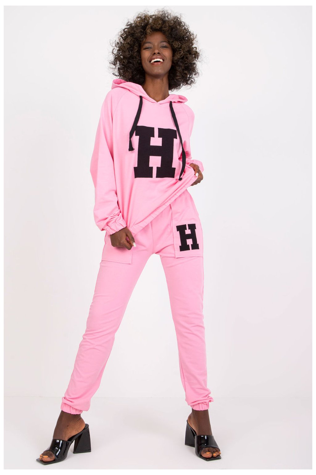 Tepláková souprava sestávající z mikiny a kalhot. Mikina s dlouhými rukávy a kapucí. Dlouhé kalhoty se zavazováním v pase a nakládanými kapsami.