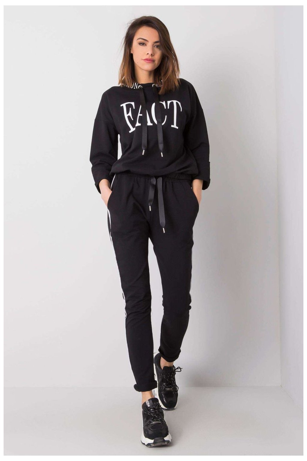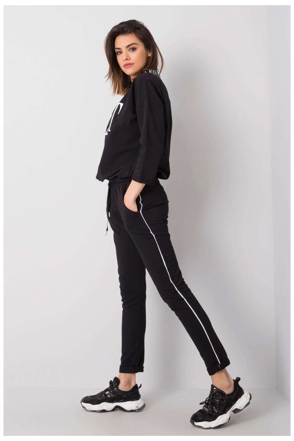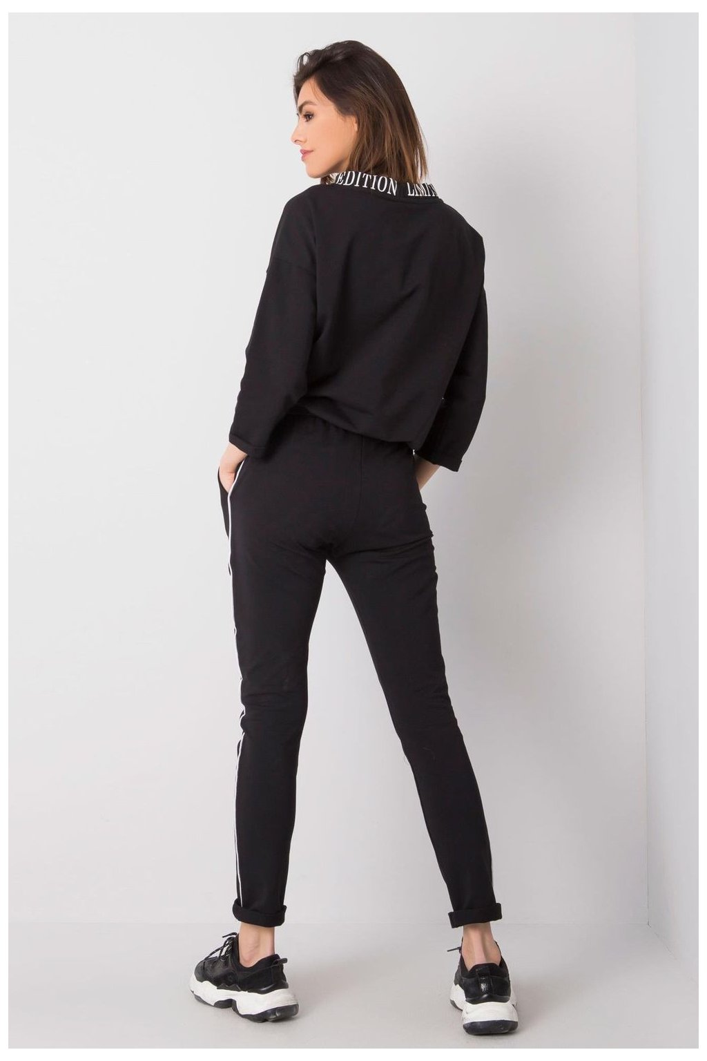 Dámská tepláková souprava sestávající z mikiny a kalhot. Halenka s 3/4 rukávy a malým stojáčkem. Dlouhé kalhoty se zavazováním v pase a nakládanými kapsami. Ozdobný nápis na přední straně a na límci.