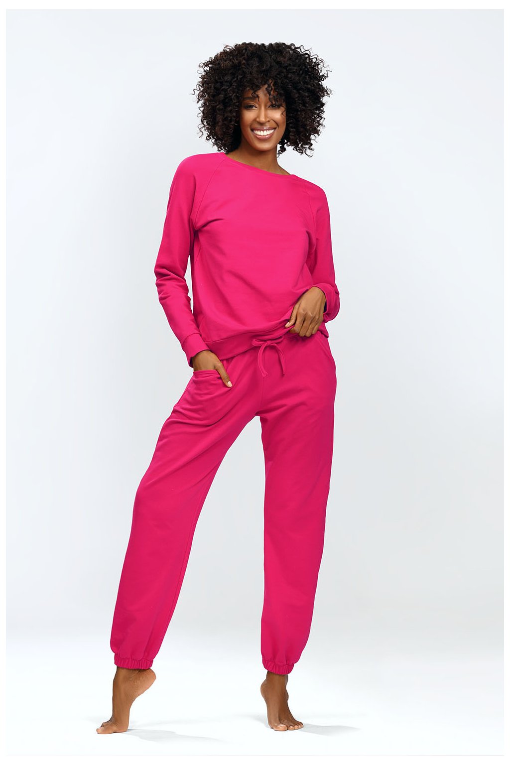 Mikina Venezia s dlouhým rukávem bez kapuce. Je vyrobena z hladkého, příjemného materiálu. Nemá zip ani kapsy. Jednoduchý design, který se hodí ke každému stylu. Ideální domácí oblečení vám umožní relaxovat v pohodlí domova. Tepláky Venezia jsou vyrobeny z hladkého, příjemného materiálu. Mají žebrované manžety ve spodní části nohavic, dvě kapsy a jsou na gumu a mají šňůrky. Díky šňůrkám lze snadno upravit velikost v pase. Díky klasickému střihu tepláky skvěle padnou každému a jsou velmi pohodlné.