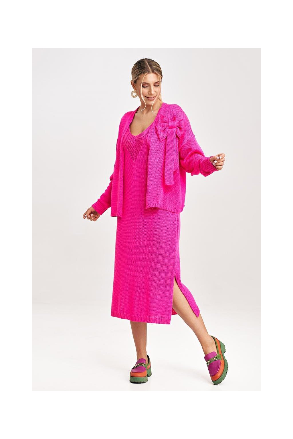 Dvoudílný set skládající se z midi šatů a bolerka. Bolerko s dlouhým rukávem, bez zapínání, s ozdobnou mašlí na přední straně. Šaty s širokými ramínky a hlubokým výstřihem.Bavlna 50 %