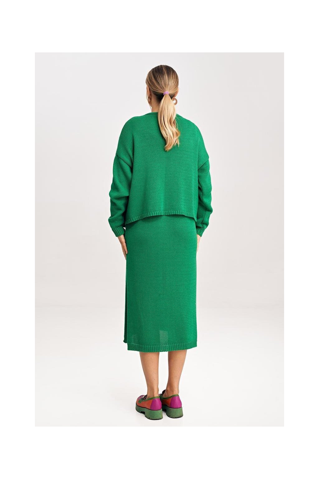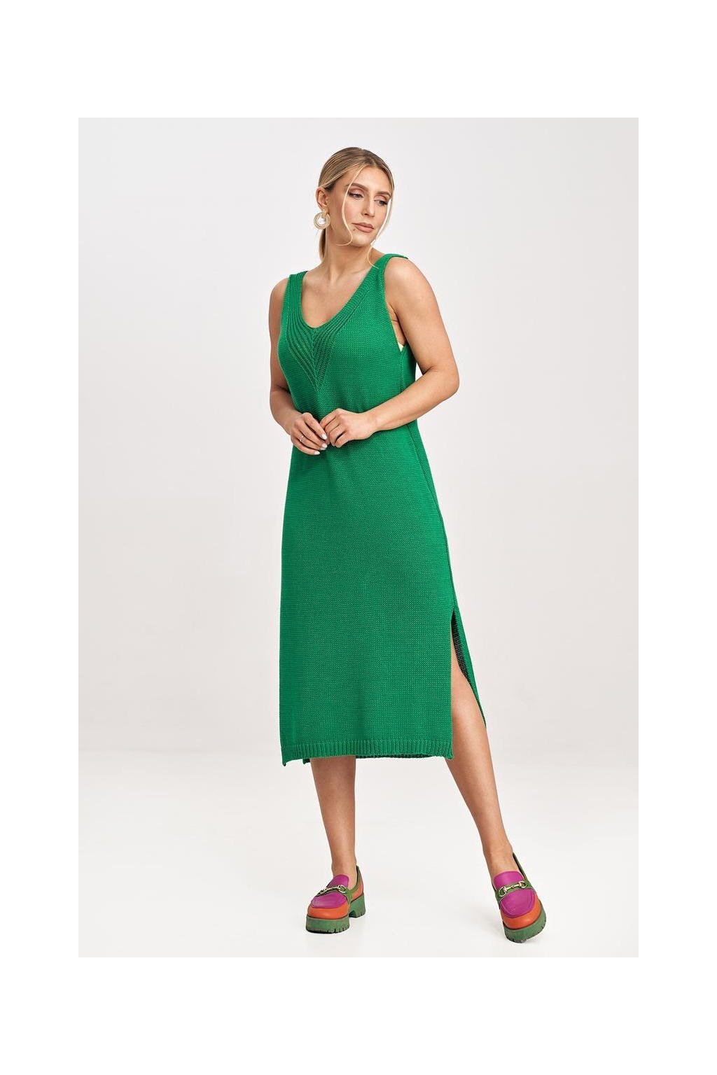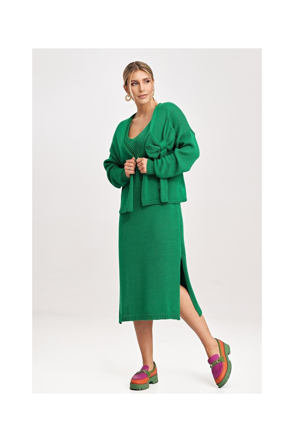 Dvouvrstvý komplet skládající se z midi šatů a bolerka. Bolerko s dlouhým rukávem, nezapínatelné s ozdobnou mašlí vpředu. Šaty s širokými ramínky a hlubokým výstřihem.Bavlna 50 %