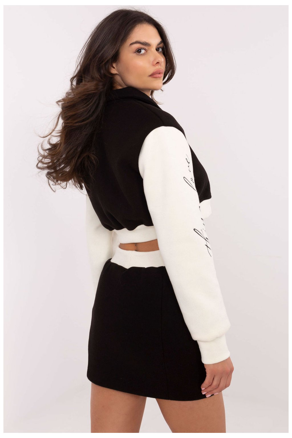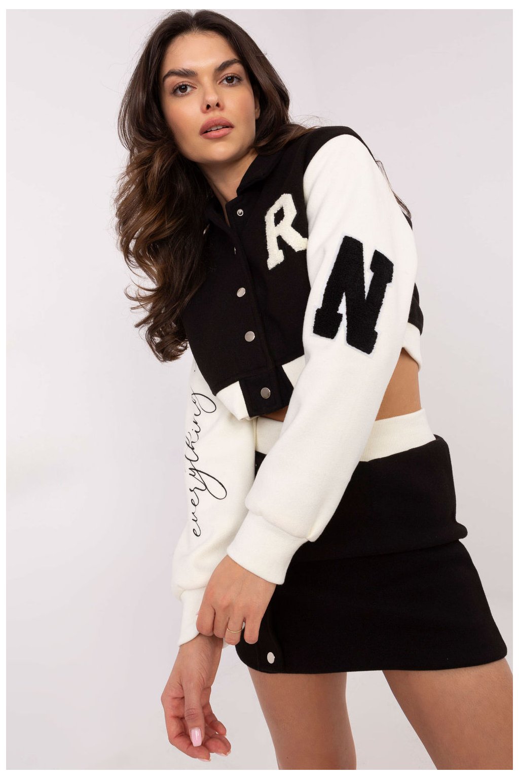 Elegantní a pohodlný dámský set ve stylu casual, ideální na každodenní příležitosti. Vyrobený z odolného polyesteru s podšívkou, poskytuje pohodlí nošení a moderní vzhled. Mikina s krátkou délkou má dlouhý rukáv, stojáček a praktické zapínání na stiskací knoflíky, které zdůrazňuje její sportovní charakter. Dekorativní nášivky na rukávu a přední části a vyšívání na druhém rukávu dodávají originalitu. Sukně s krátkou délkou je vybavena širokým pásem, což zaručuje pohodlné přizpůsobení a zdůraznění pasu. Hladký vzor setu mu dodává univerzálnost, skvěle se hodí jak k minimalistickým, tak k výraznějším stylizacím. Jedná se o praktický a módní set pro ženy, které chtějí spojit pohodlí s výrazným designem.