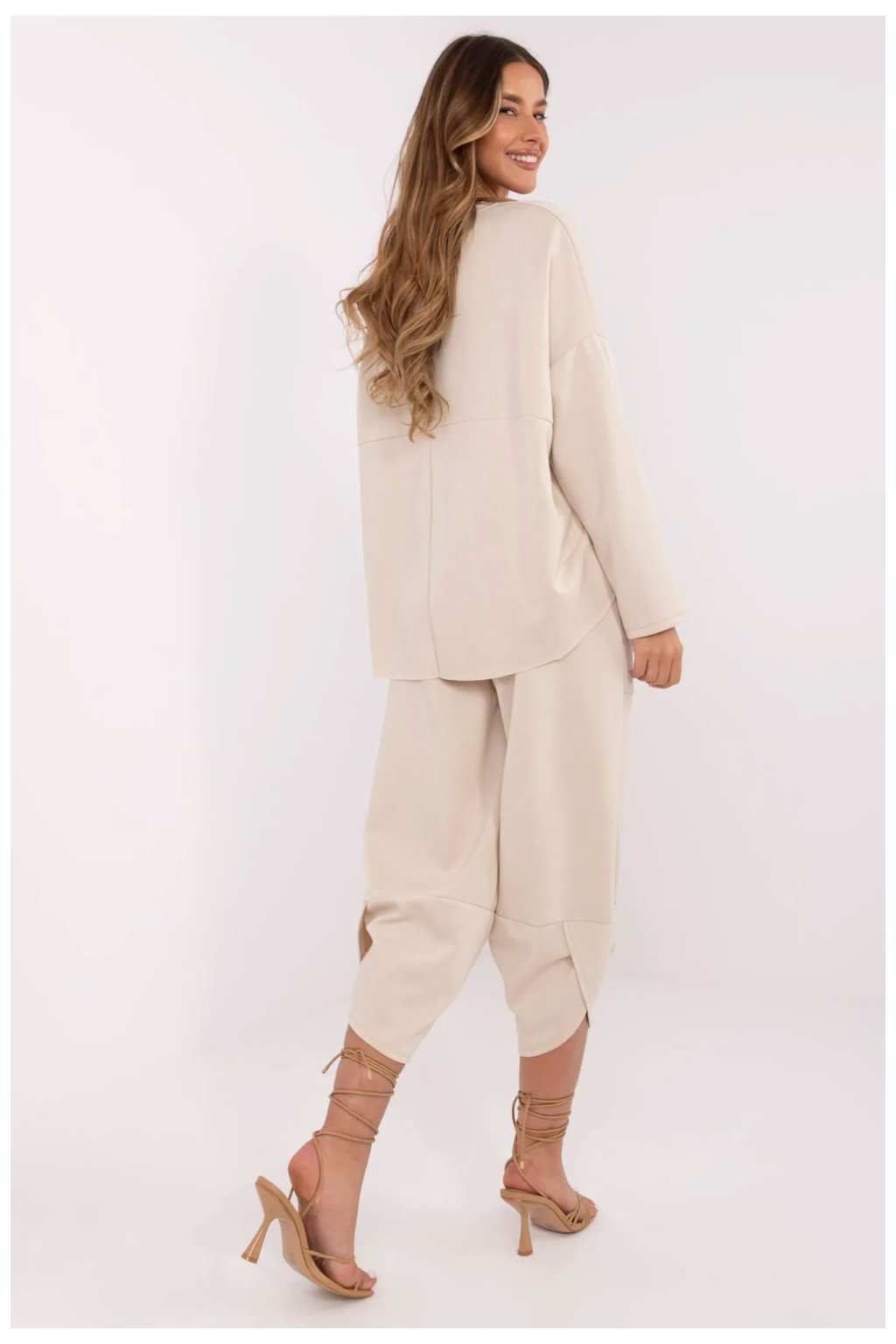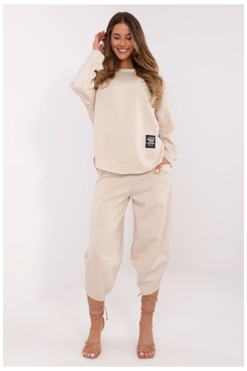 Dámský teplý set je skvělou volbou pro každodenní nošení pro ženy, které ocení pohodlí a styl. Vyrobený z vysoce kvalitní směsi viskózy, bavlny a elastanu, poskytuje pohodlí a přizpůsobení se postavě. Mikina s dlouhým rukávem a kulatým výstřihem se vyznačuje decentním nášivkem dole, který celkově dodává módní akcent. Kalhoty s délkou 7/8 a vysokým pasem zdůrazňují pas a otevřené, nášivkové kapsy zajišťují funkčnost. Hladký vzor a ležérní styl z něj činí skvělý doplněk do každodenních outfitů, ať už doma, na procházce nebo při nákupu.