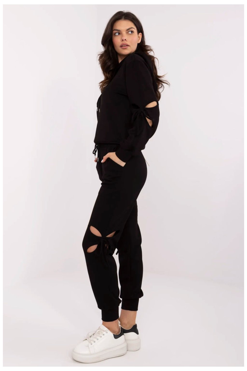 Casualový dresový komplet je ideální kombinací pohodlí a módního stylu. Vyroben z měkké směsi viskózy, polyesteru a elastanu, zajišťuje pohodlí při nošení a volnost pohybu. Mikina s kapucí má dlouhý rukáv a decentní rozparky na rukávech s ozdobnými šňůrkami, které dodávají celku originální charakter. Kalhoty s vysokým pasem a bočními kapsami na vkládání zaručují pohodlí, a náplety u nohavic zvýrazňují sportovní styl. Další výhodou jsou rozparky na nohavicích s ozdobnými šňůrkami, které dodávají neotřelý vzhled. Elastický pas se šňůrkou umožňuje dokonalé přizpůsobení. To je vynikající volba na každý den pro ženy, které si cení pohodlí a módního akcentu ve stylizacích. Komplet vyrobený z materiálu typu máslo, mimořádně měkkého, příjemného na dotek, dokonale se přizpůsobujícího tělu.