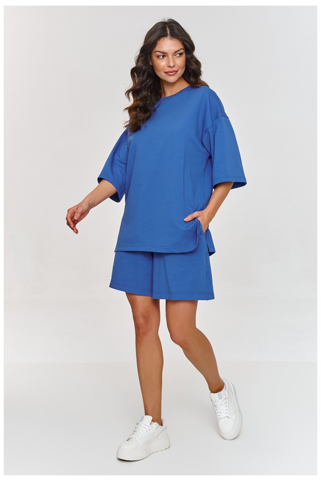 Tento pohodlný dresový set je ideálním řešením pro ženy, které si cení pohodlí a nadčasovosti ve svých každodenních stylizacích. Oversize střih trička zaručuje plnou volnost pohybu a trendy vzhled. Krátký rukáv a klasický kulatý výstřih dělají z tohoto kousku ideální nenáročnou základnu pro každodenní stylizace. Šortky mají elastický pas, co zajišťuje správné přizpůsobení a bokové kapsy zdůrazňují jejich funkčnost. Volný střih kalhot a široké nohavice zajišťují plnou volnost pohybů a kratší délka je činí ideální na teplé dny. Jednoduchý, ale efektní dresový set spojuje minimalistický design s pohodlím, vytvářejíc skvělou volbu pro každodenní stylizace. Je to must-have pro relaxaci doma, setkání s přáteli nebo krátké výlety. Nicméně jeho univerzálnost umožňuje také jeho využití při různých fyzických aktivitách.