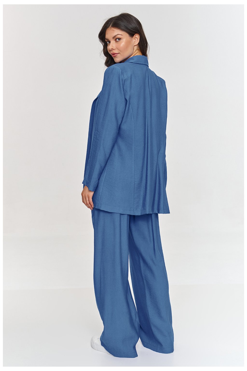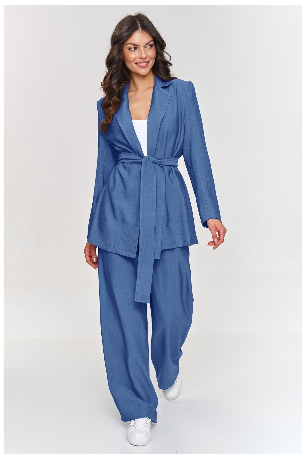 Tento dámský komplet byl navržen s ohledem na ženy, které hledají spojení stylu, pohodlí a moderní elegance. Sako s delším volným střihem dodává outfitu moderní charakter a vázaný pásek umožňuje přizpůsobení postavě a zdůraznění pasu. Nemá podšívku, což ho činí lehčím a volnějším. Kalhoty s širokými nohavicemi podtrhují módní vzhled a elastický pas zajistí maximální pohodlí. Model je vyroben z lehkého, strukturovaného materiálu, který zdůrazňuje jeho výjimečnost a třídu. Další výhodou je možnost nošení každého kusu samostatně, vytvářející různorodé a originální outfity. Díky jednoduchému, ale efektnímu střihu je tento komplet skvělým řešením jak pro výlety s přáteli, tak i do kanceláře, na obchodní schůzky a jiné formální události, kde chcete vypadat profesionálně a zároveň nechcete ustoupit pohodlí.