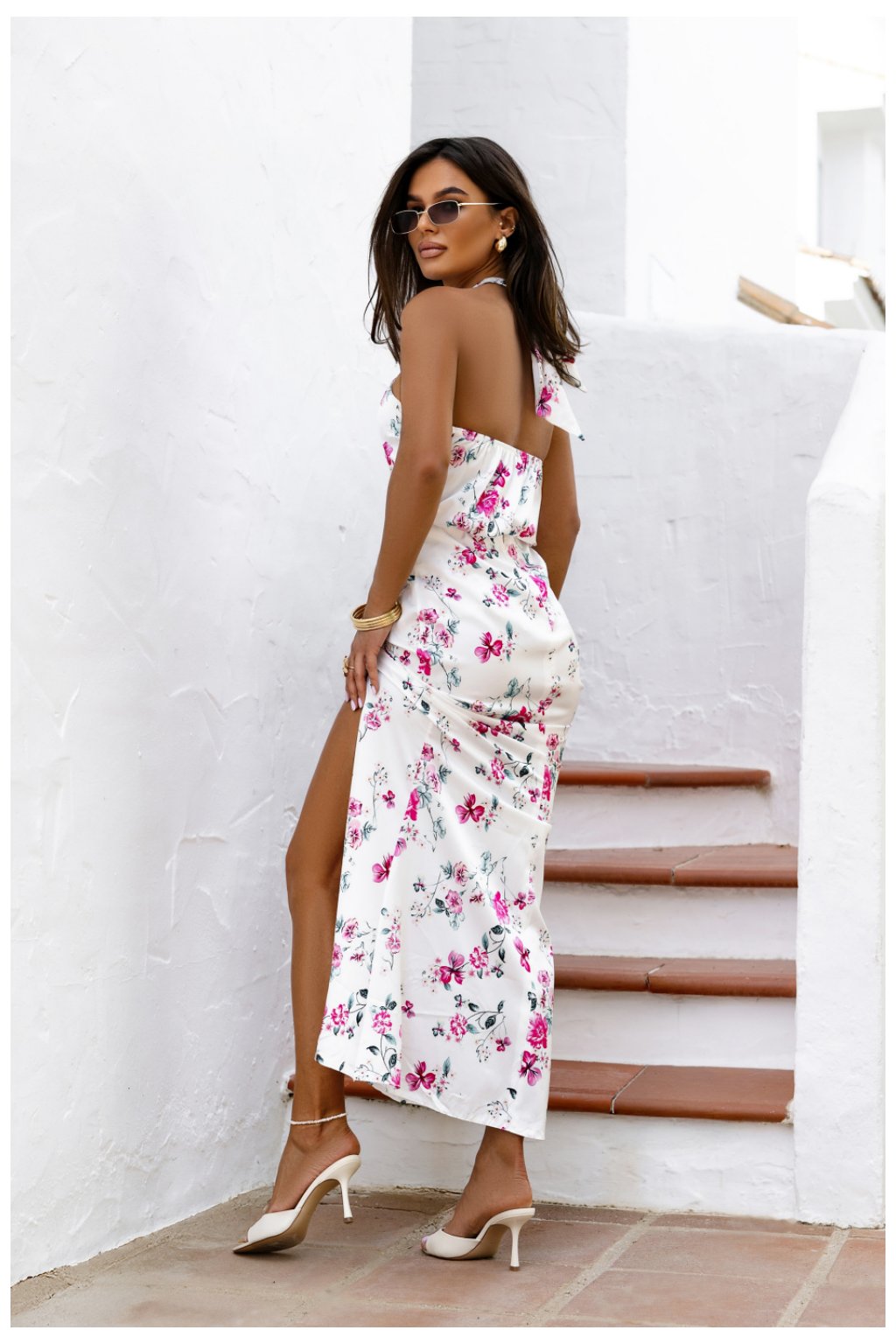 Elegantní a smyslný dámský komplet vyrobený z jemně lesklého saténu, ideální na speciální příležitosti nebo letní večery. Blůza se váže kolem krku jemně zdůrazňujíc ramena a výstřih, a vsazená gumová páska vzadu zajistí pohodlné přizpůsobení se postavě. Dlouhá sukně s efektním rozparkem do poloviny stehna dodá lehkost a ženský šarm, zdůrazňující nohy v pohybu. Tento komplet spojuje klasiku a moderní styl, skvělá volba na rande, večírek nebo letní party.