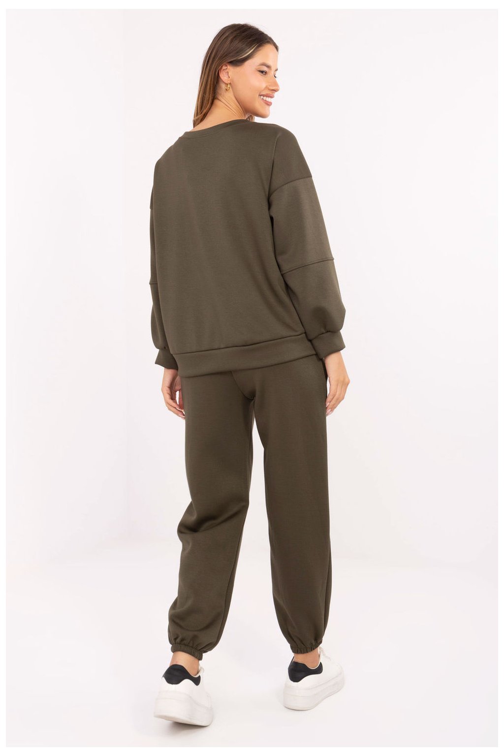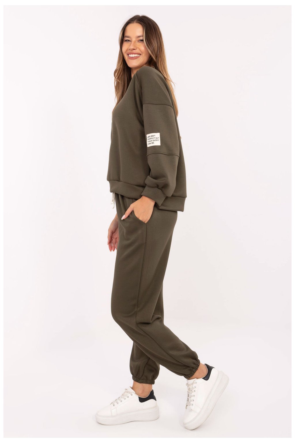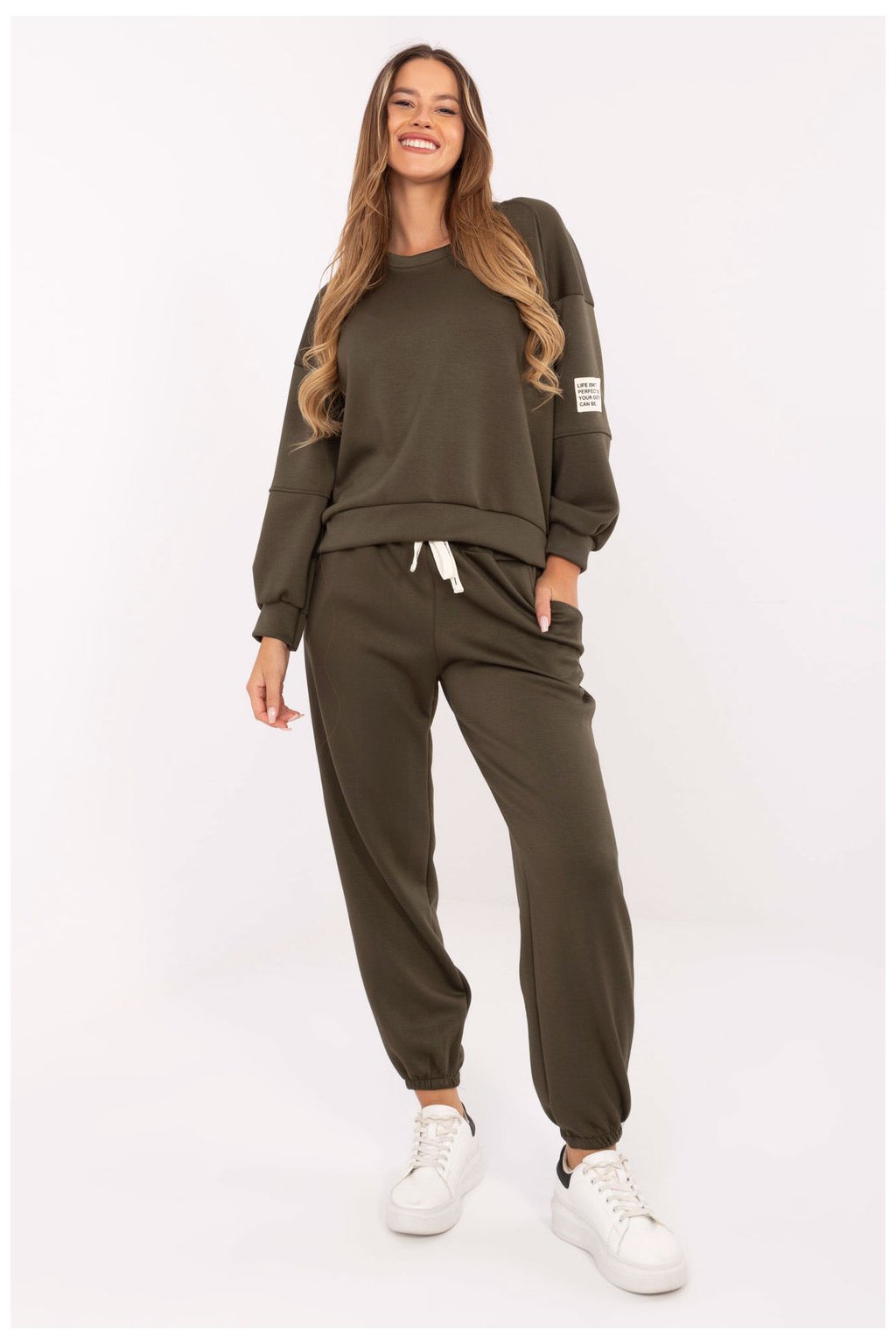 Kompletní sportovní souprava vyrobena z jedinečného materiálu typu "masełko", který potěší svou měkkostí, něžností a neuvěřitelným pocitem při dotyku. Skládá se z mikiny s dlouhým rukávem a kulatým výstřihem a kalhot s pohodlným střihem. Celý set je v jednoduchém vzoru, díky čemuž vypadá minimalisticky a stylově. Kalhoty mají vysoký pas s praktickým šňůrkováním v pase, boční vložené kapsy a nohavice jsou zakončeny manžetami, což jim dodává sportovní a zároveň moderní charakter. Mikina klasické délky skvěle ladí se kalhotami, vytvářející souvislý a pohodlný celek. Dominující materiál, směs viskózy, elastanu a bavlny, zaručuje vynikající pohodlí nošení, prodyšnost a elasticitu. Je to ideální volba na každý den, do casual stylizací, ve kterých je důležitá pohodlnost a svoboda pohybu, a zároveň módní vzhled.