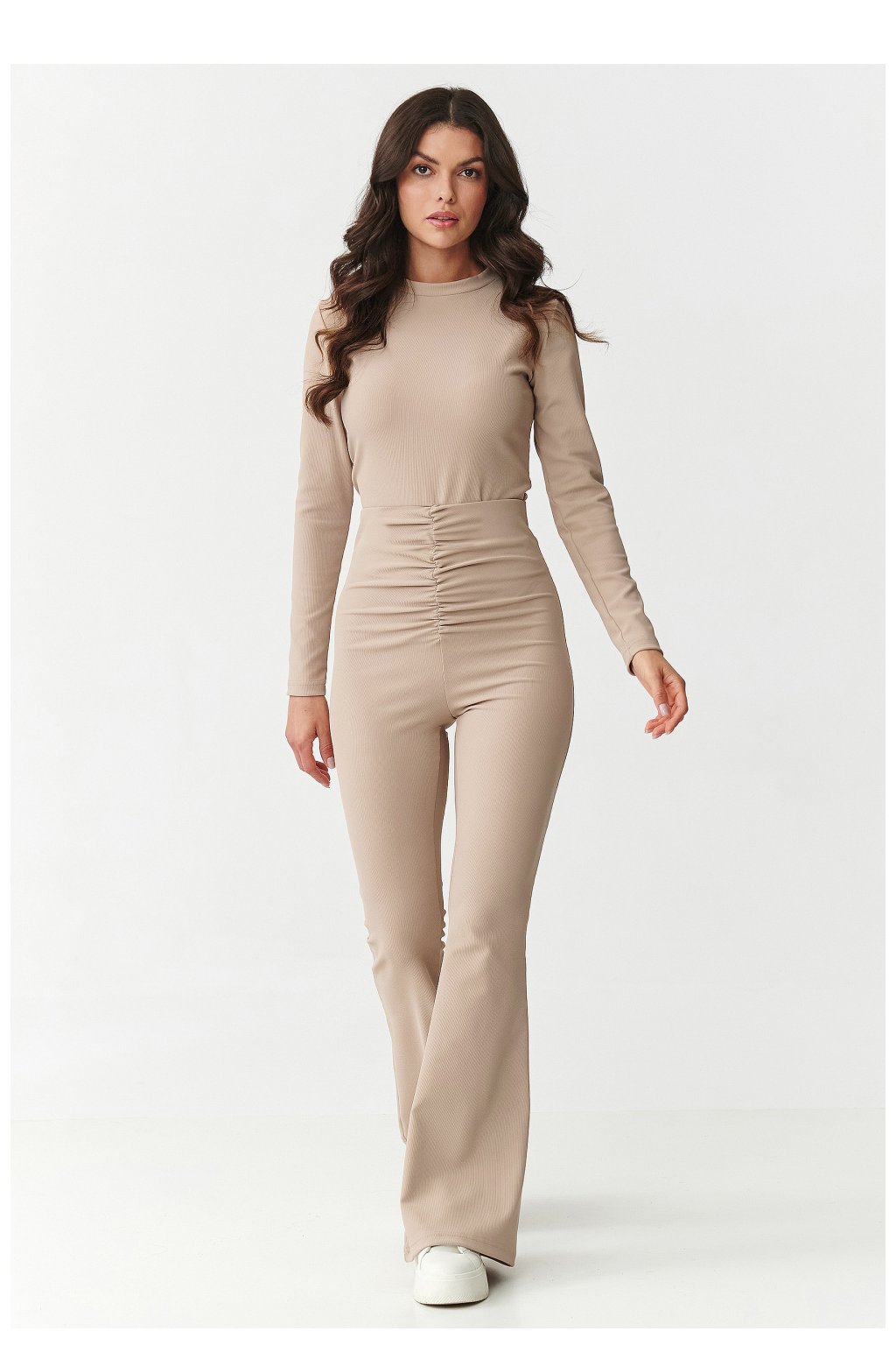 Vsadte na vzhled, který kombinuje eleganci a pohodlí! Tento jedinečný dámský set se skládá z přiléhavé košile s dlouhým rukávem a kalhot s vysokým pasem a rozšířenými nohavicemi. Vyrobený z vysoce kvalitní proužkované látky krásně zdůrazňuje postavu a poskytuje pohodlí po celý den. Košile má klasický střih s vysokým límcem a je zapínána vzadu na zip, co ji činí pohodlnou a zároveň velmi elegantní. Kalhoty s vysokým pasem zdůrazňují pas a tvarují postavu a díky zástřihu v pase dodávají postavě proporce, zatímco rozšířené nohavice typu flare opticky prodlužují nohy. K dispozici ve čtyřech nadčasových barvách: bordó je ženské a smyslné, černá klasika, která se hodí ke všemu, čokoládová moderní a výrazná, béžová elegantní a decentní. Tento set se osvědčí na mnoha příležitostech od večerních setkání, přes slavnostní události, až po obchodní outfit. Stačí přidat oblíbené podpatky a šperky, abyste vytvořili efektní a moderní vzhled.