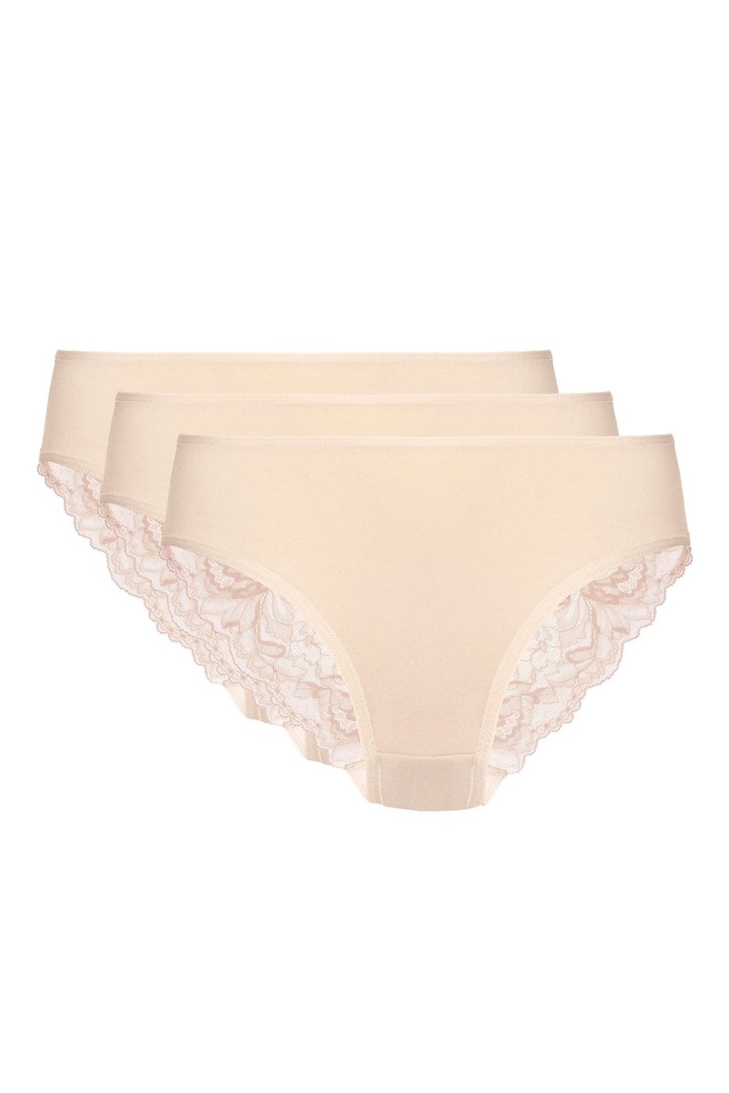 Trojpak figových bavlněných kalhotek s krajkovým zadním dílem. Krajkový zadní díl kalhotek nedělá pod oblečením viditelné stopy. Pohodlný střih, který neomezuje pohyb. Široký gumový pás účinně udržuje spodní prádlo na svém místě. Je pohodlné a nezařezává se do těla. Klin byl vyroben z bavlny s certifikátem OEKO-TEX, díky čemuž jsou příjemné a bezpečné pro intimní partie. Přední část kalhotek je vyrobena z bavlny z 100% polské přádelny. Kalhotky byly navrženy a vyrobeny v Polsku.