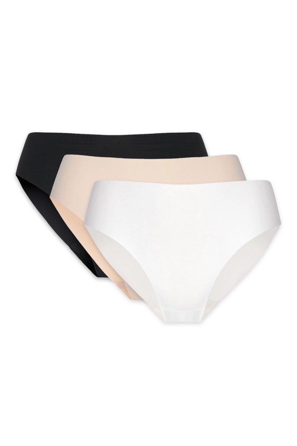 Trojpak bezšvových kalhotek. Bezšvový střih kalhotek zaručuje diskrétnost, kalhotky nejsou viditelné ani pod těsným oblečením. Pohodlný střih, ideální na každý den. Klin byl vyroben z příjemné a bezpečné bavlny pro intimní partie, díky čemuž jsou tanga bezpečné pro intimní partie.