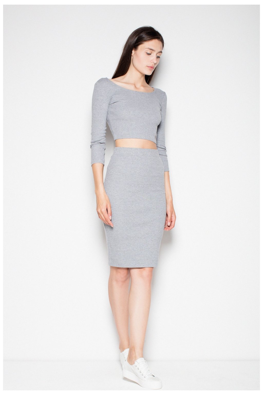 Bavlněná souprava. Top s dlouhými rukávy a klasický střih tužkové sukně.