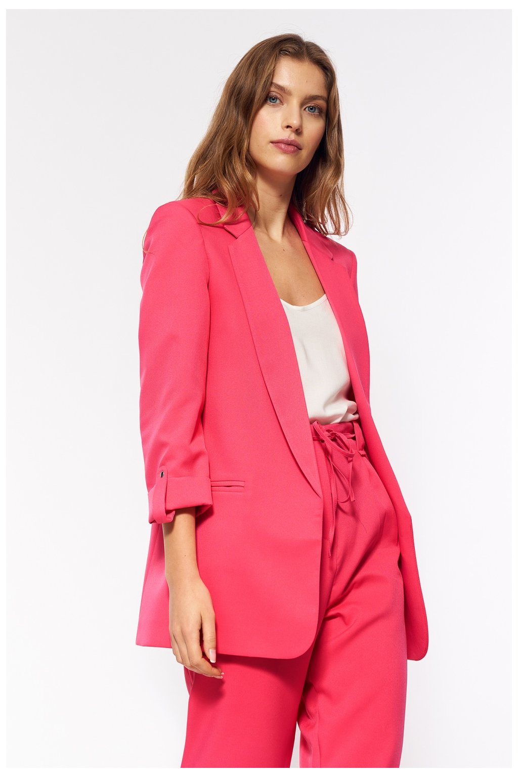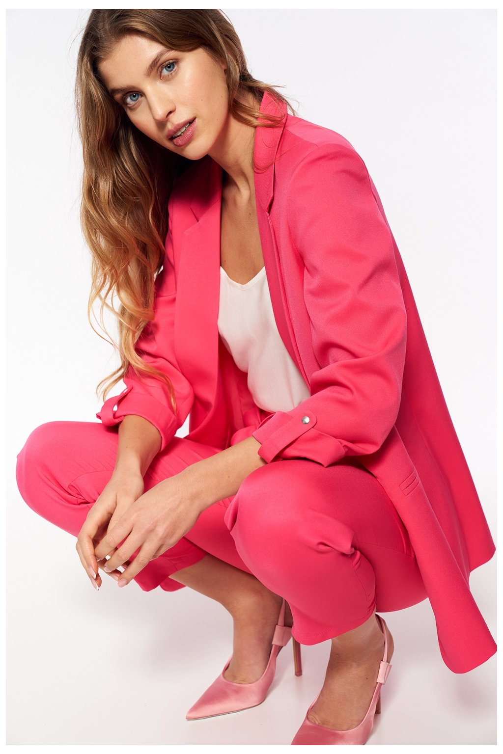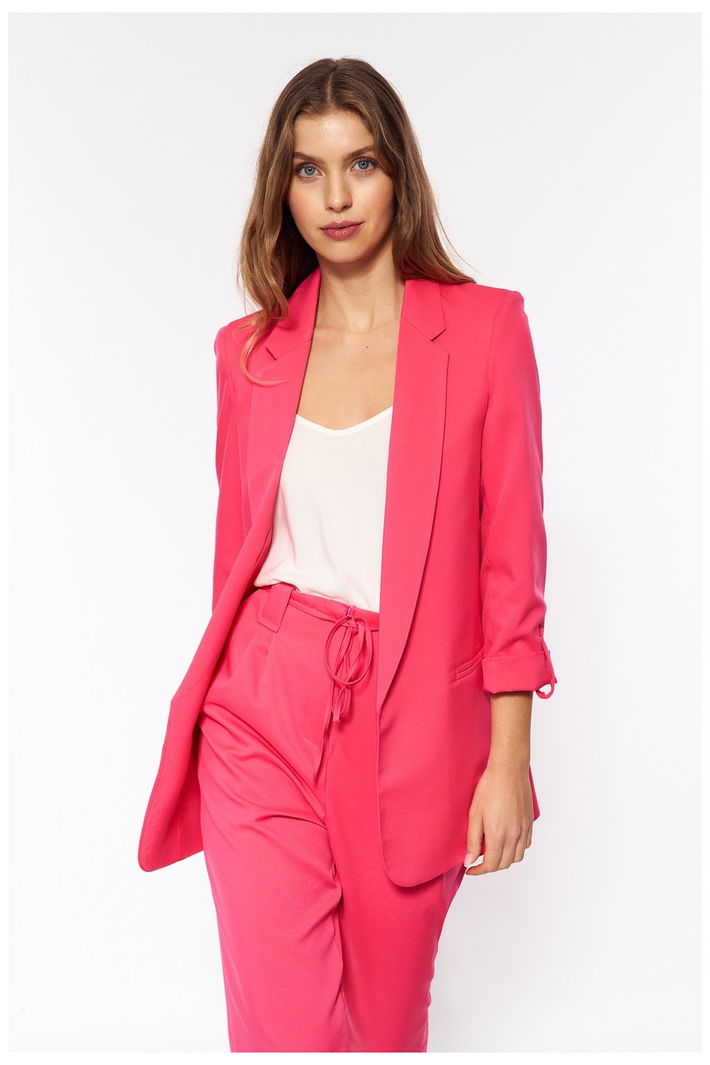 Přivítejte jaro barevným vzhledem! Růžové oversize sako s ohrnutými rukávy je ideální volbou pro každou příležitost! Lze je kombinovat s elegantními kalhotami nebo tužkovou sukní, šortkami, džínami nebo jarními šaty. Rozepnuté sako s podšívkou.