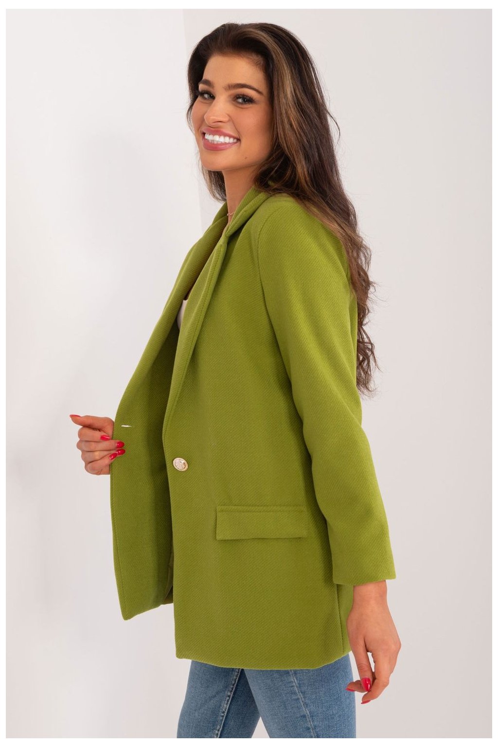 Dámské sako je vynikající volbou pro ženy, které si cení elegance a stylu. Díky svému sofistikovanému charakteru se skvěle hodí na obchodní schůzky i formální příležitosti. Díky své univerzálnosti je navíc ideálním kouskem oblečení do práce i na každodenní schůzky. Dominantním vzorem saka je hladký povrch, který mu dodává klasický a nadčasový vzhled. Převažujícím materiálem je kvalitní polyester, který zaručuje odolnost a pohodlí při nošení. Díky tomu je bunda vynikající volbou pro různá roční období, dobře funguje v podzimně-zimním i jarním období. Standardní délka a dlouhé rukávy podtrhují eleganci a díky nim se bunda skvěle hodí k různým stylům. Zapínání na knoflíky dodává bundě charakter a jednořadový střih jí dodává moderní nádech. Sako je podšité pro větší pohodlí a estetický vzhled. Klasické klopy dodávají saku sofistikovaný vzhled a dokonale ladí s elegantním stylem. Díky této kombinaci vlastností se toto dámské sako stává nezbytnou součástí šatníku žen, které chtějí zdůraznit své sebevědomí a osobitý styl v nejrůznějších situacích.