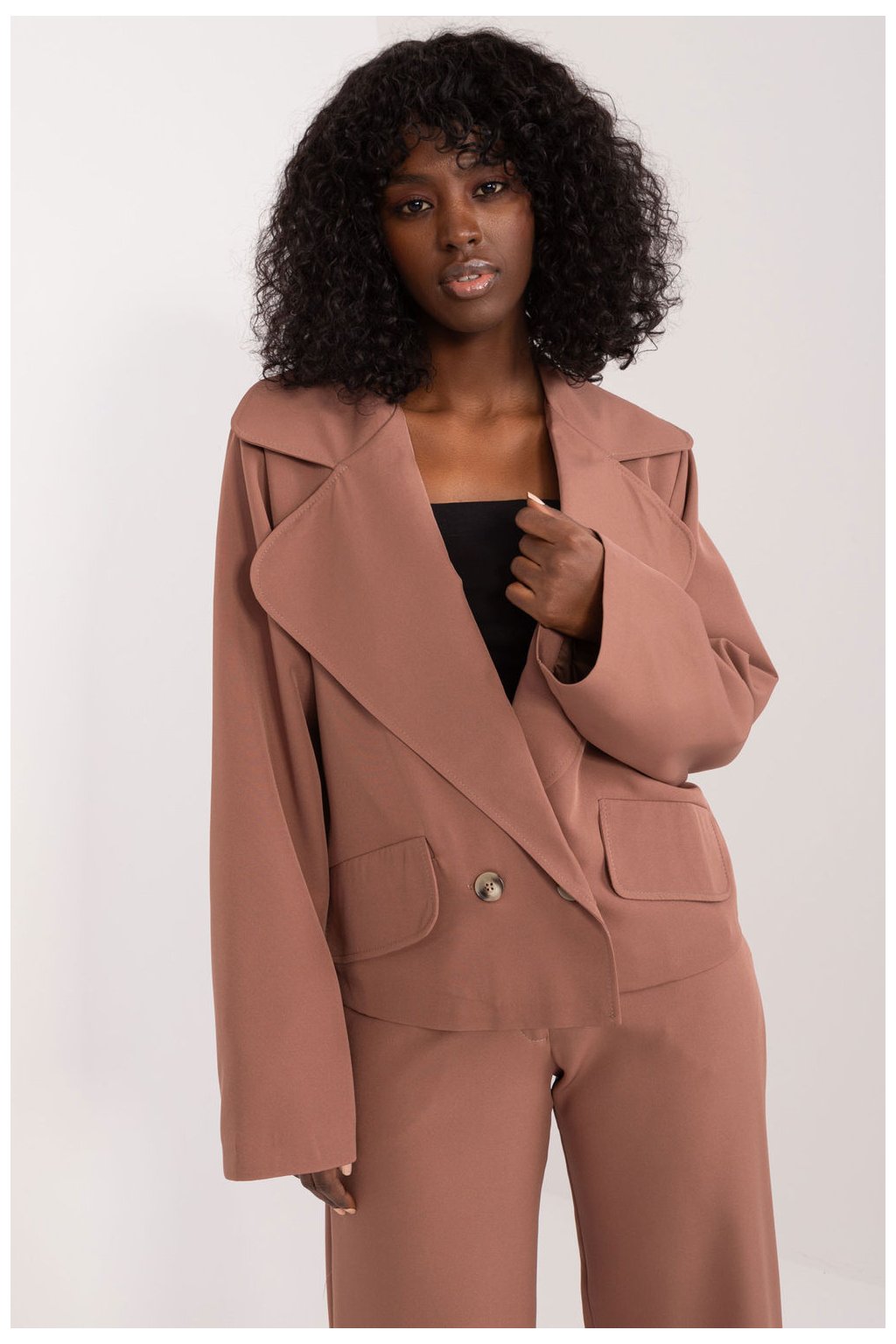 Toto elegantní sako s dlouhými rukávy je univerzálním kouskem šatníku, který se hodí pro různé příležitosti, od každodenních situací až po pracovní schůzky nebo elegantní večírky. Díky jeho výrazným rysům a kvalitnímu zpracování se budete cítit sebevědomě a stylově v každé situaci. Sako je vyvedeno v elegantním stylu, takže je ideální volbou pro mnoho příležitostí, od běžných až po formálnější. Jeho jednobarevný vzor mu dodává univerzálnost a hodí se k různým stylům a doplňkům. Díky podšívce a dlouhým rukávům je bunda ideální pro chladnější roční období, ať už podzim a zimu, nebo jaro a léto. Standardní délka a dvouřadové zapínání na knoflíky a klopy dodávají eleganci a úroveň. Díky praktickým nakládaným kapsám je bunda nejen stylová, ale také funkční a umožňuje pohodlné uložení drobných předmětů. Díky elegantnímu designu a kvalitnímu zpracování se toto sako jistě stane klíčovým kouskem vašeho šatníku, který podtrhne váš styl a dodá vám sebevědomí v každé situaci.