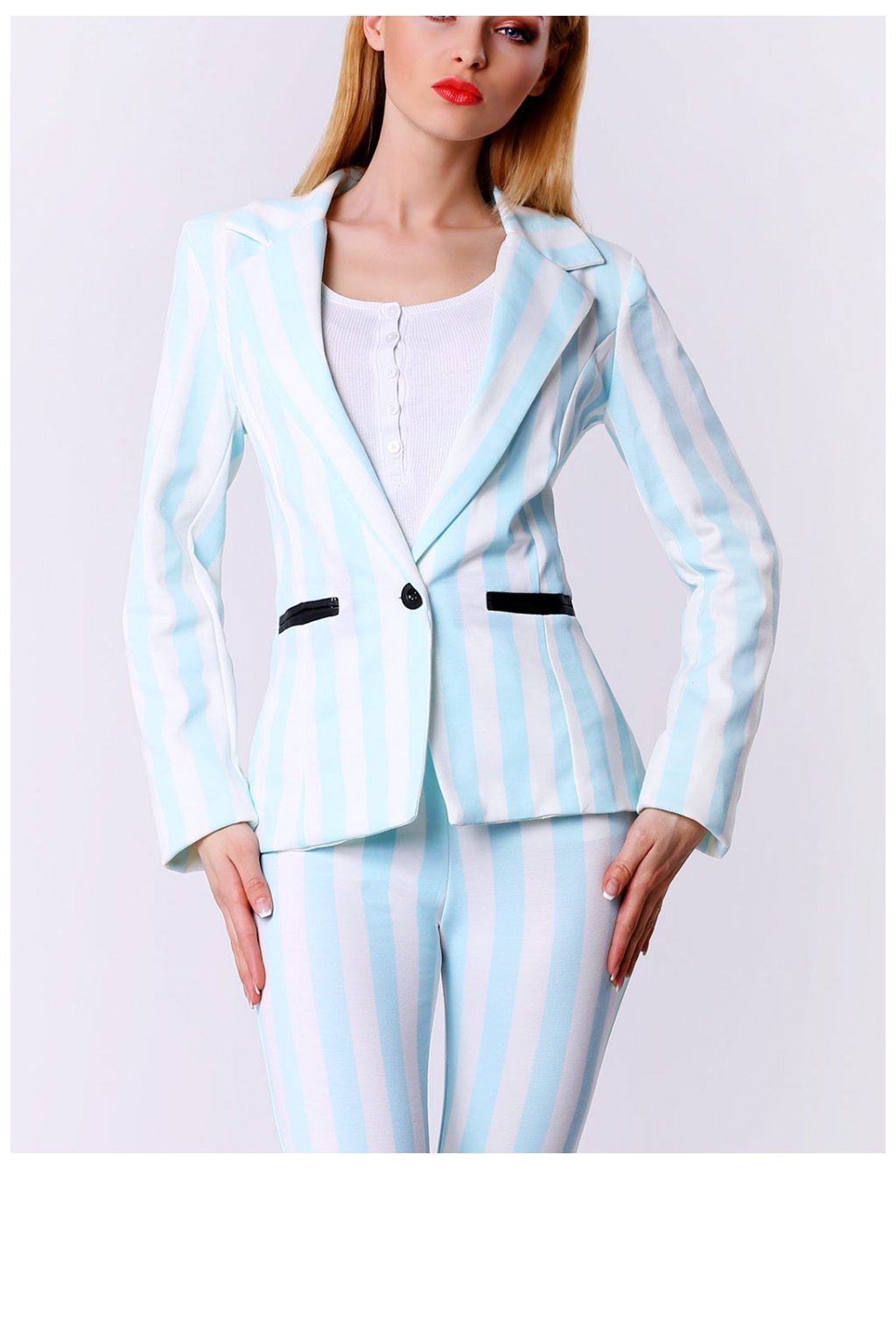 Pruhovaná móda a dívčí vzhled - dokonalá a módní kombinace pro tuto sezónu. Dámská bunda v pastelových pruzích, kterou musíte mít! Zapínání na knoflíky, kapsy z imitace ekokůže, podšívka.