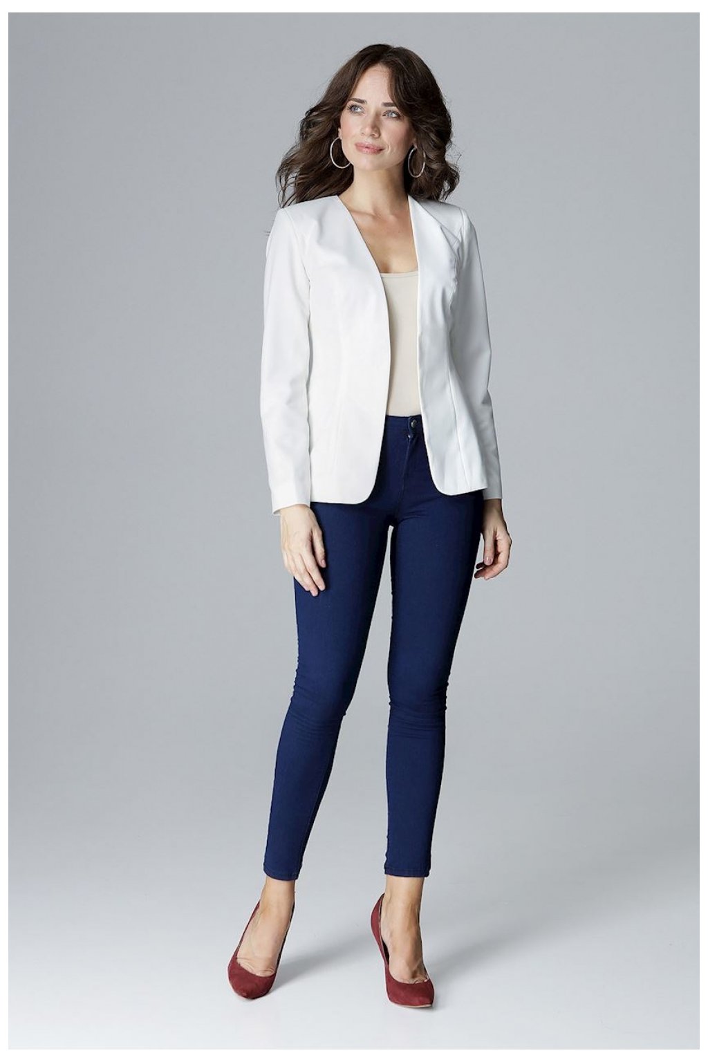 Jednoduchá bunda s dlouhými rukávy bez zapínání. Dodává styl a eleganci, vypadá dobře s přiléhavým bílým topem.