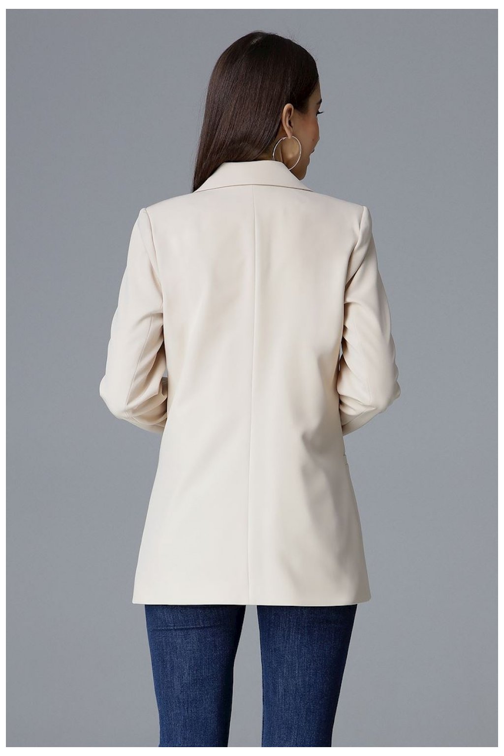Elegantní sako úzkého střihu, které krásně zvýrazní postavu. Rovné rukávy, výstřih do V, zapínání na dva ozdobné knoflíky. Skvělá nabídka pro každou příležitost.