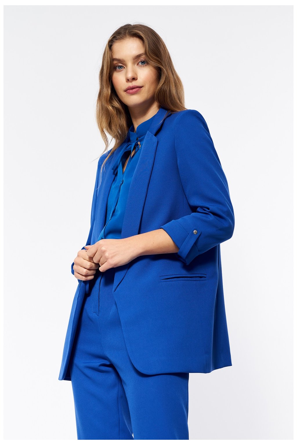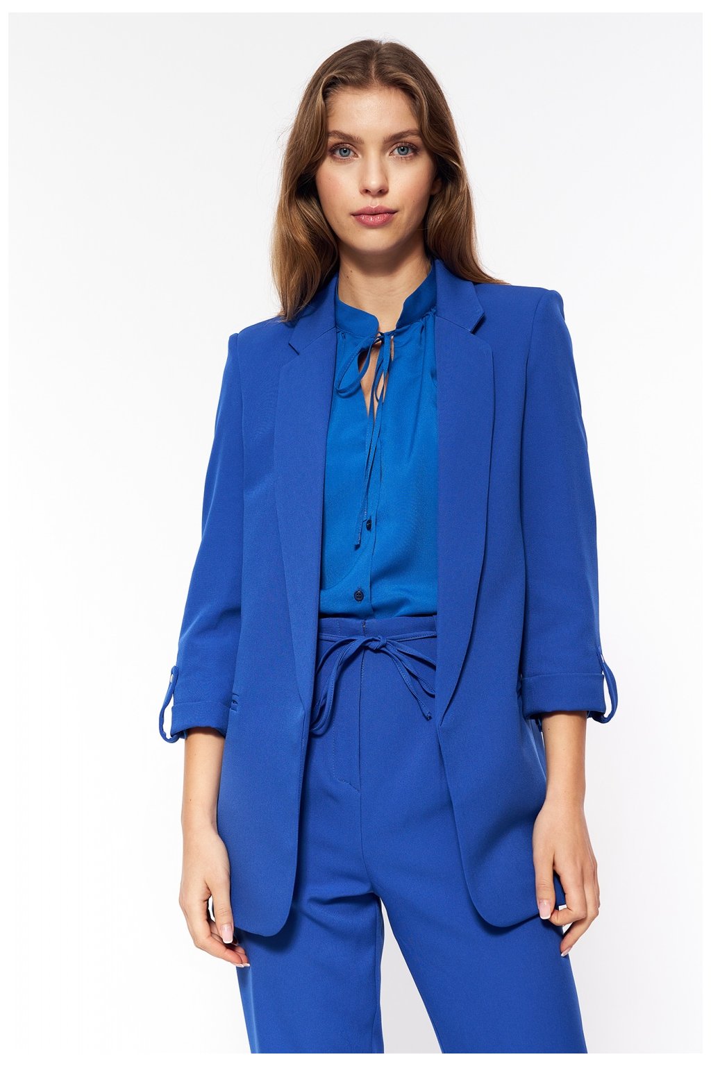 Přivítejte jaro barevným vzhledem! Chrpová bunda nadměrné velikosti s ohrnutými rukávy je ideální volbou pro každou příležitost! Lze je kombinovat s elegantními kalhotami nebo tužkovou sukní, šortkami, džínami nebo jarními šaty. Rozepnuté sako s podšívkou.
