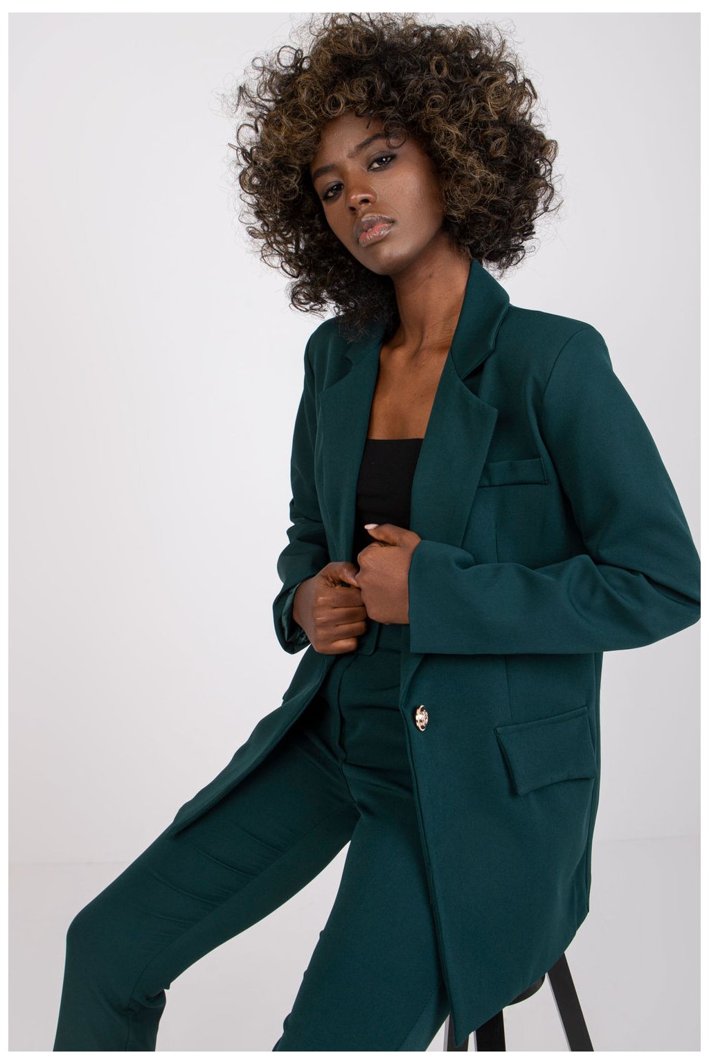 Dámské sako s dlouhými rukávy a zapínáním na knoflíky. Bunda s podšívkou a imitací kapes. Polštáře přišité na ramenou. Skvěle se hodí pro mnoho příležitostí.