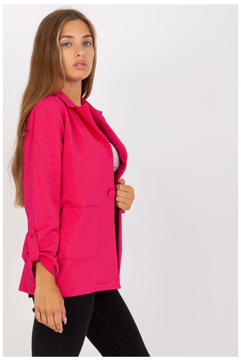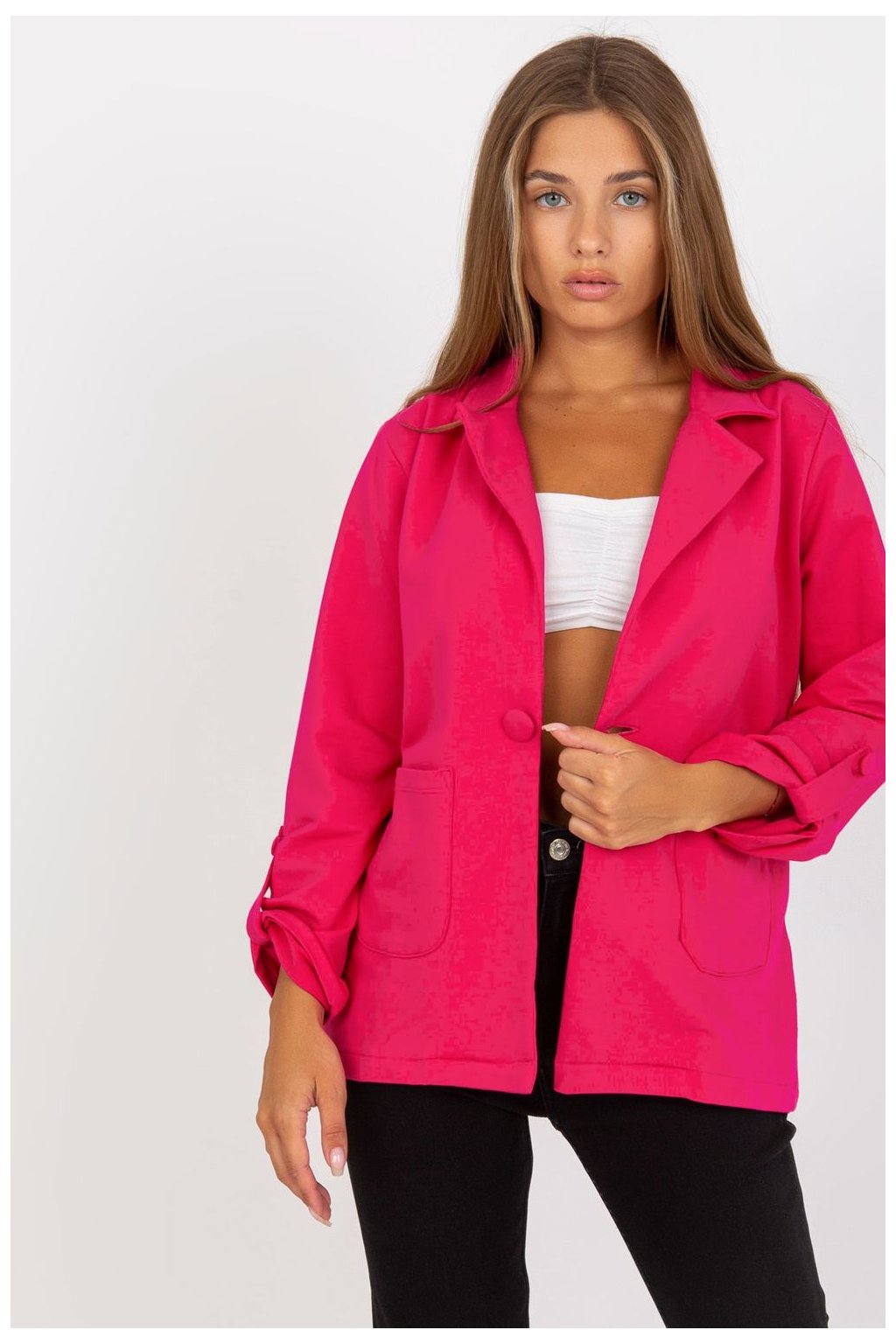 Tepláková bunda s dlouhými rukávy a zapínáním na knoflíky. Bunda s nakládanými kapsami. Rukávy s možností zapínání.