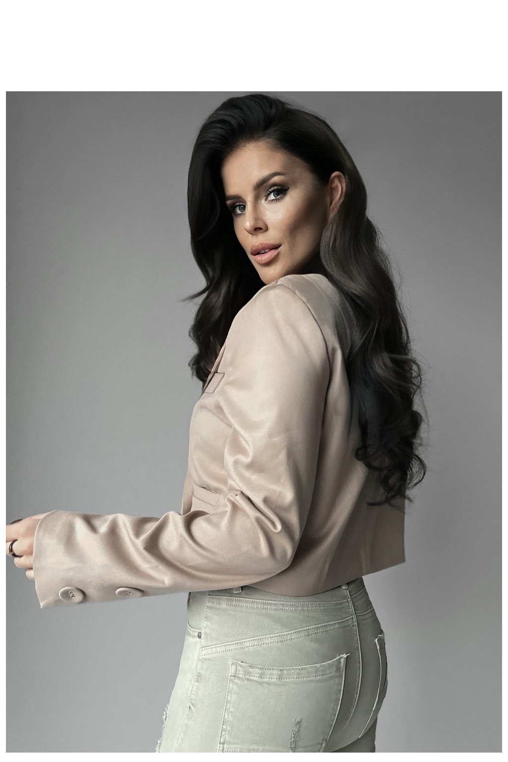 Krátký kabátek z hladké tkaniny, s dlouhými rukávy, zapínání na knoflíky. Sako je plně podšité.