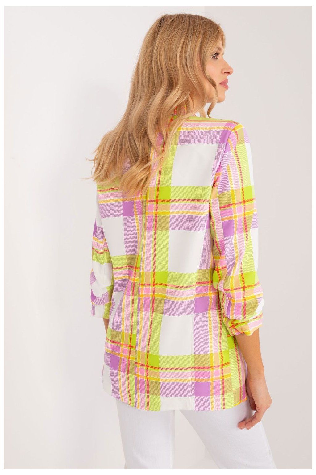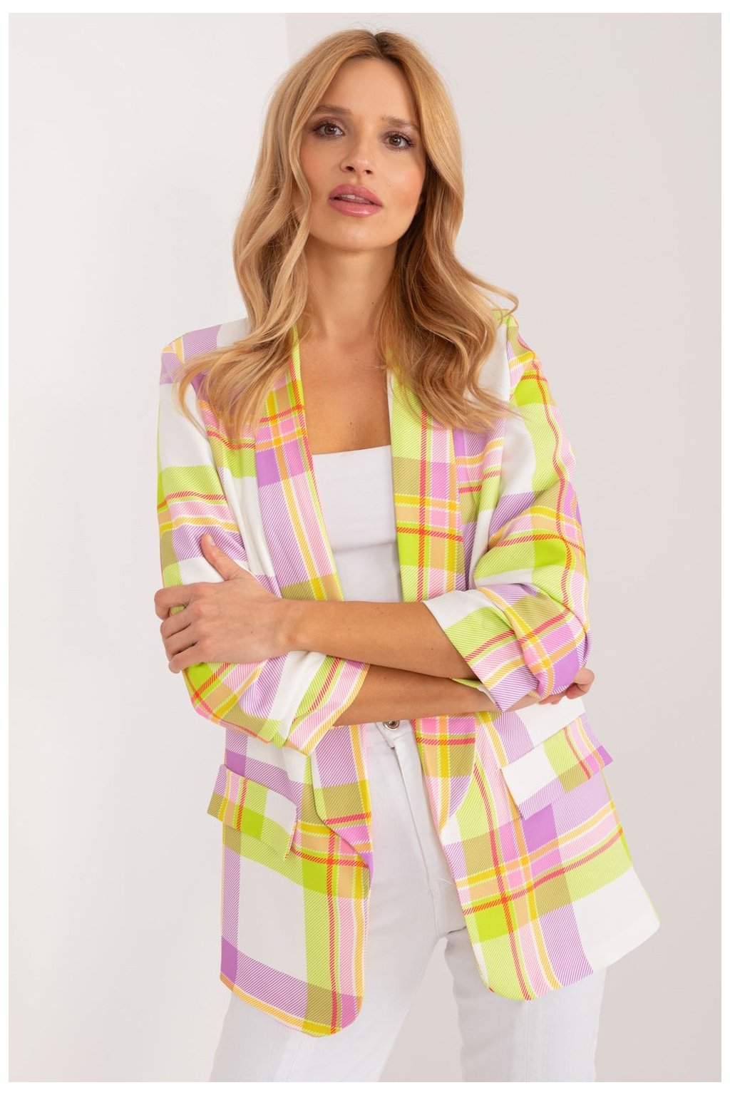 Toto dámské sako je typickým příkladem ležérního stylu, který se hodí na každodenní nošení, do práce i na neformální akce. Jeho jedinečný design má lemované klopy, které dodají každému oblečení eleganci a úroveň. Toto sako bylo navrženo s ohledem na sezónu jaro/léto a je dokonalým doplňkem vašich letních outfitů. Barevný károvaný potisk dodává bundě charakter a originalitu a celkovému vzhledu dodává energii a svěžest. Bunda je vyrobena převážně z polyesteru a nabízí pohodlné nošení a snadnou údržbu. Díky standardní délce se skvěle hodí k různým kouskům oblečení. Tříčtvrteční rukávy jí dodávají na lehkosti a jsou ideální pro nošení v teplejších dnech. Díky absenci zapínání se bunda snadno obléká a perfektně sedí na postavě. Navíc je vybaveno podšívkou a ramenními vycpávkami, takže poskytuje pohodlné nošení a elegantní zakončení. Toto dámské sako je ideální volbou pro ženy, které ocení volnost, pohodlí a originální styl pro každodenní i neformální styling.