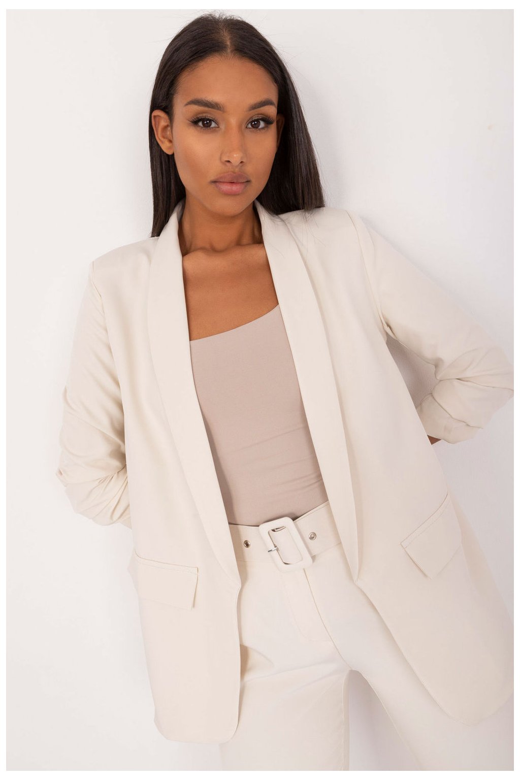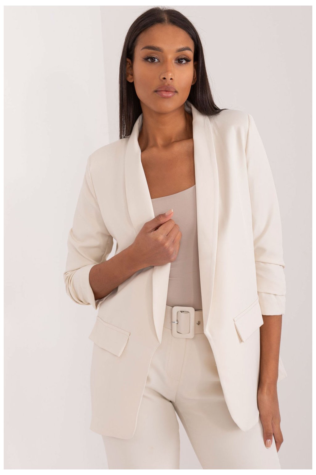 Elegentní sako je skvělou volbou pro ženy, které chtějí přidat eleganci do svých každodenních, kancelářských a společenských stylizací. Díky pečlivému zpracování a univerzálnímu designu je toto sako ideálním kouskem do šatníku na různé příležitosti. Elegantní styl saka ho činí všestranným kouskem oblečení, který dodává každému outfitu sofistikovaný charakter. Sako je vyrobeno z vysoce kvalitního polyesteru, který je odolný, odolný proti vráskám a snadno se udržuje. Jednolitá a hladká látka mu dodává klasický vzhled, což ho činí univerzálním a snadno kombinovatelným s ostatními kousky oblečení. Standardní délka saka z něj činí univerzální kousek, který sedí různým postavám. Tato střih je elegantní a praktická, ideální na různé příležitosti. Tříčtvrteční rukáv dodá saku lehkost a činí ho ideálním na teplejší dny a praktickým na nošení po celý rok. Tento střih je také módní a pohodlný. Sako s podšívkou poskytuje další pohodlí a zajišťuje, že se materiál pěkně usazuje, což zajišťuje bezchybný vzhled po celý den. Klasické špičaté límce dodávají saku eleganci a formální vzhled. Jsou to detaily, které zdůrazňují jeho vyrafinovaný charakter.