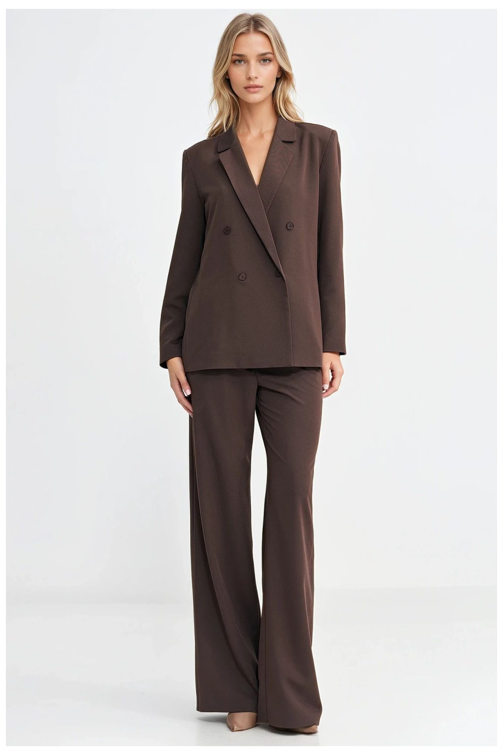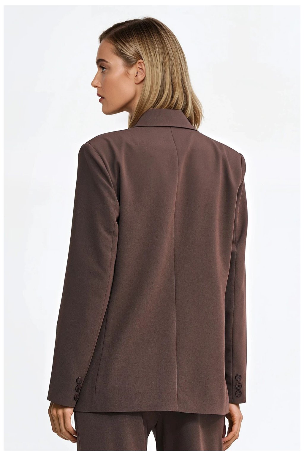 Elegantní dámský oversized sako je must-have v moderní šatníku. Károvaný límec s límci dodává klasický charakter a dvouřadé zapínání na knoflíky zdůrazňuje nadčasový, elegantní styl. Model je vybaven dlouhými rukávy se zapínáním na knoflíky a polštářky na ramenou, které krásně tvarují postavu a dodávají celku výraznou formu. Délka pod boky z ní činí skvělý doplněk jak do casual, tak formálních outfitů. Pro větší pohodlí a estetický dojem je sako plně podšité (100% polyester). Je to stylový návrh, který skvěle ladí s džínsy, látkovými kalhotami nebo šaty.