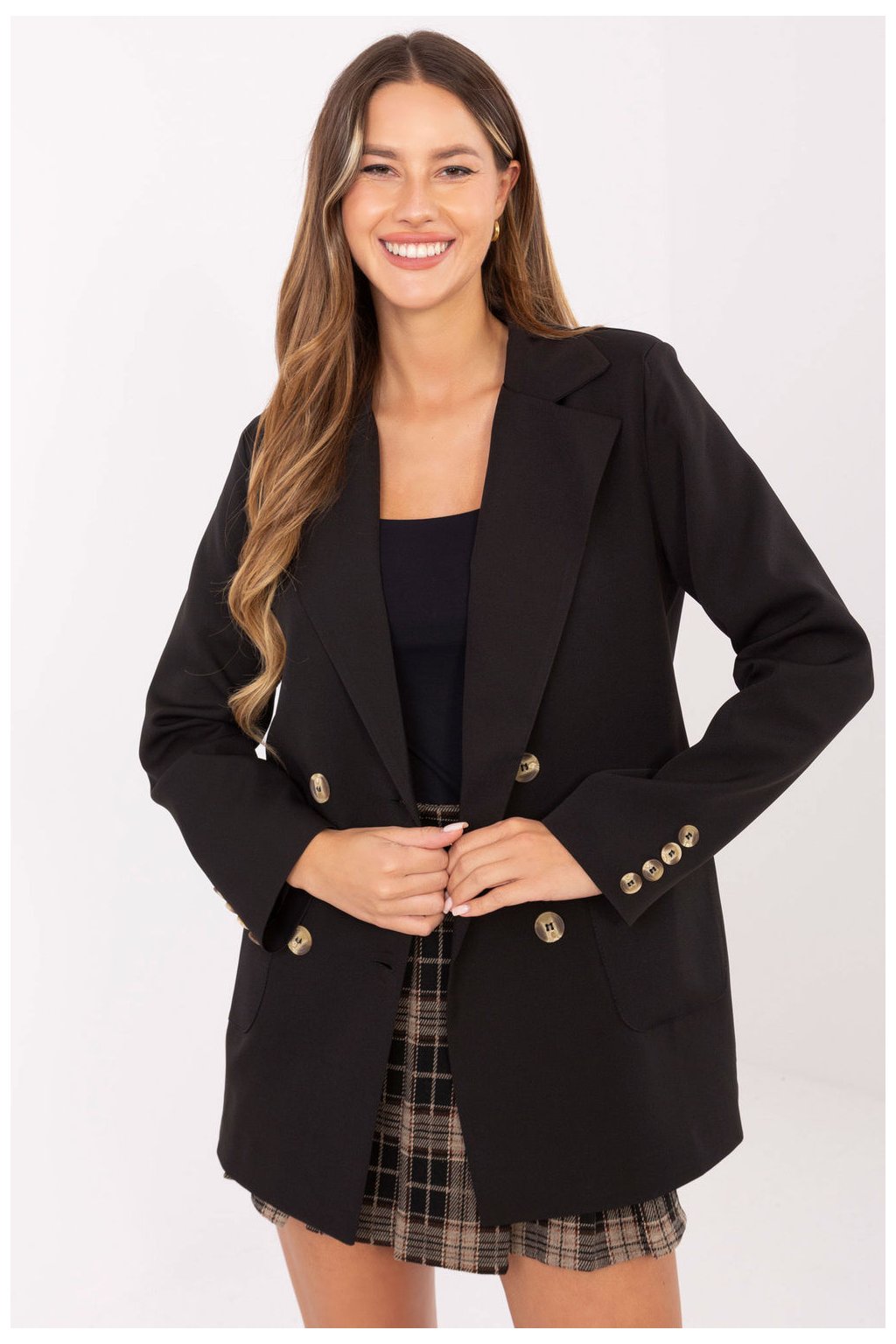 Elegantní dámský sako je klasický model, který se skvěle hodí jak do každodenních, tak do společenských stylizací. Vyrobený z vysoce kvalitní směsi bavlny, polyesteru a elastanu poskytuje pohodlí nošení, ideální přizpůsobení a elegantní vzhled po celý den. Model standardní délky a dlouhými rukávy ohromuje propracovanými detaily ozdobnými knoflíky na rukávech a dvouradým zapínáním vpředu. Hladká látka a nasazované kapsy přidávají celku eleganci a funkčnost. Sako má podšívku, díky čemuž se skvěle tvaruje podle postavy a zdůrazňuje její proporce. Je to nadčasový střih, který skvěle doplní stylizace do práce, na obchodní schůzky nebo elegantní výstupy.