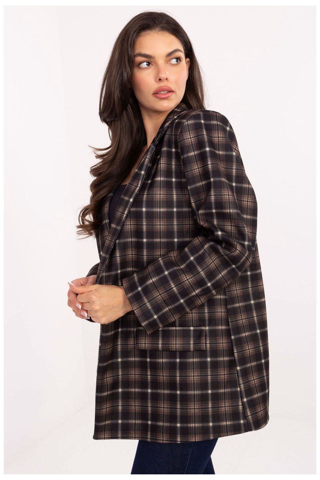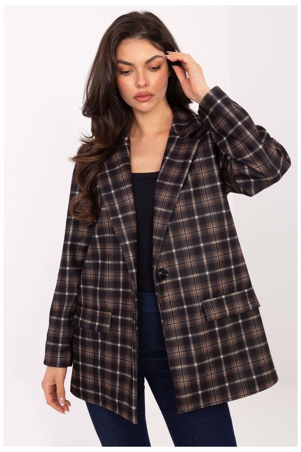 Elegantní a moderní dámský kostkovaný sakó s knoflíkem, kombinující volný charakter s elegancí vhodnou do práce. Vyrobený z vysoce kvalitní směsi viskózy a polyesteru, poskytuje pohodlí nošení a trvanlivost, a vestavěné polštářky na ramenou dodávají siluetě jemný, elegantní tvar. Model má standardní délku a dlouhé rukávy, a klasický kostkovaný vzor přináší módní, nadčasový akcent do každodenních stylizací. Kromě toho je sakó podšitý, což zaručuje pohodlí a estetické provedení. Je to ideální návrh pro každodenní vycházky, do práce nebo do volných, elegantních sestav, který kombinuje pohodlí, styl a moderní charakter.