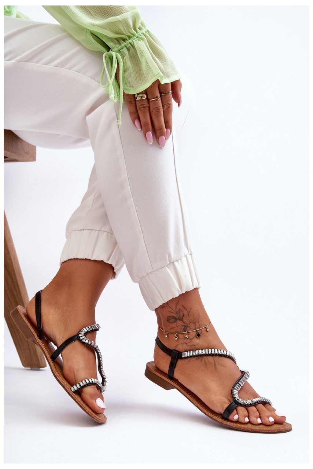 Klasické dámské sandály jsou posazeny na plochém podpatku. Tyto boty jsou nazouvacího střihu. Na řemíncích mají ozdoby. Tento model se skvěle hodí na letní sezónu! Měkká stélka je vyrobena z ekologické kůže. Nezapomeňte si prohlédnout i další modely sandálů v našem obchodě!