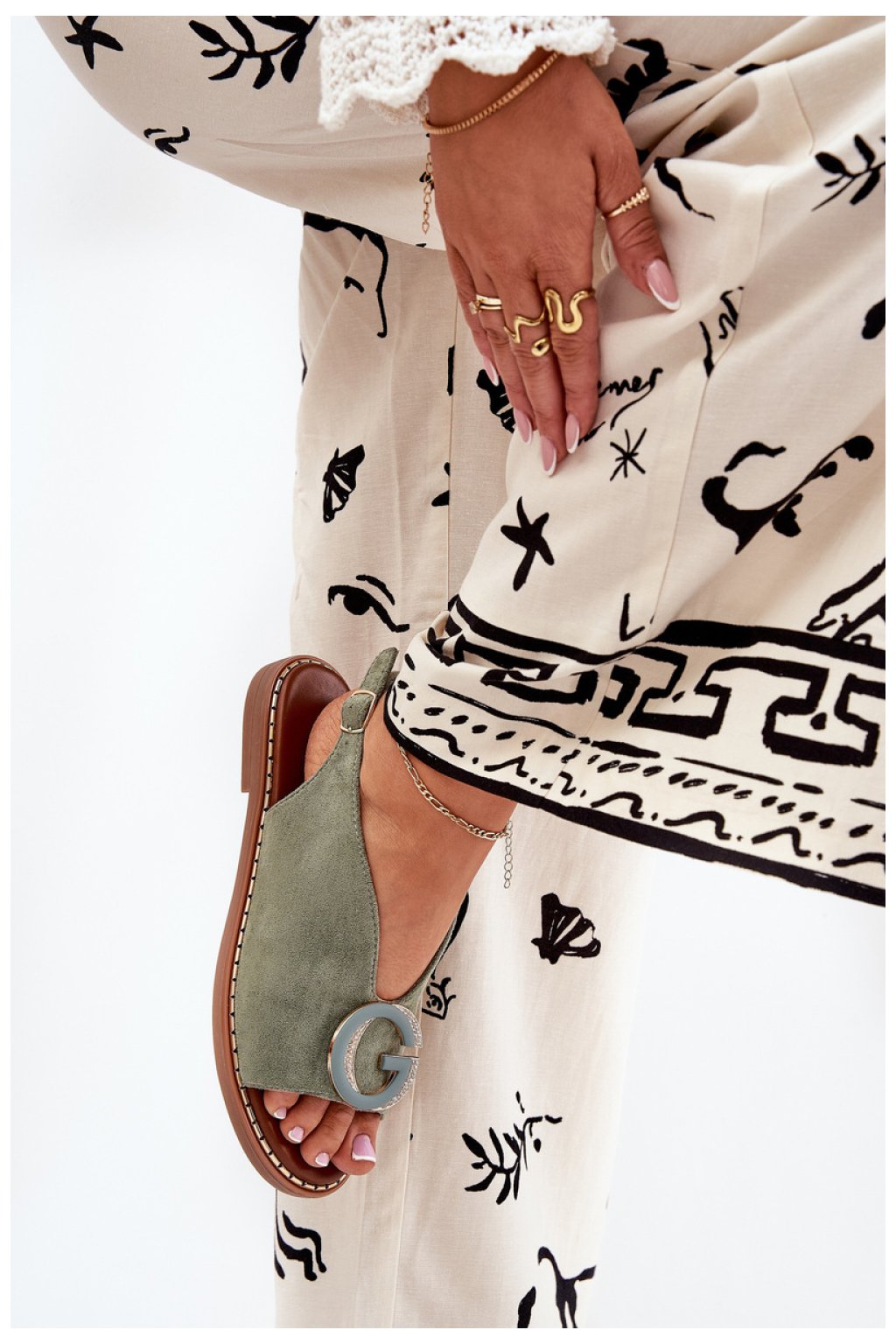 Ploché dámské sandály jsou skvělým tipem na letní dny. Na přední straně je ozdoba, která jim dodává jemné kouzlo, a nastavitelný popruh se sponou umožňuje dokonalé přizpůsobení noze. Ekokůrová vložka zajišťuje komfort po celý den. Tyto sandály kombinují styl s funkčností a představují skvělý doplněk jak každodenních, tak i elegantnějších outfitů.