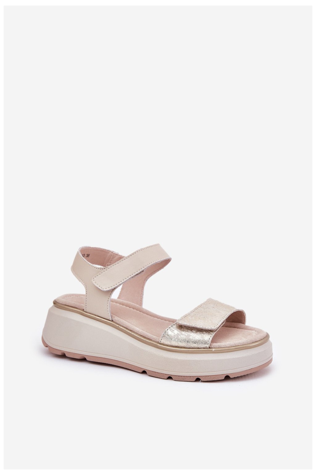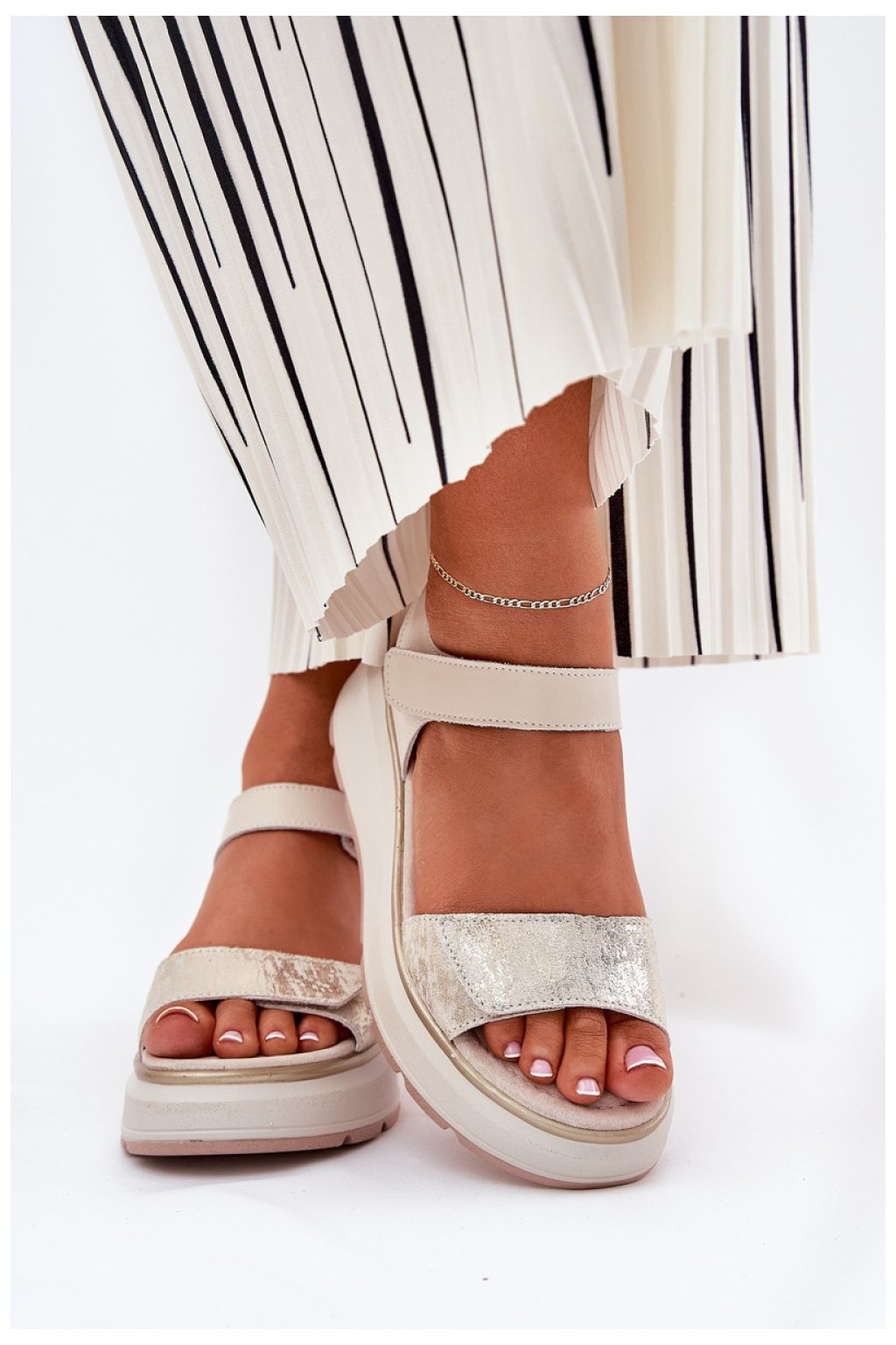 Dámské sandály z přírodní kůže, umístěné na platformě a klíně, které kombinují pohodlí s elegantním vzhledem. Zapínání na dva suché zipy, což zajišťuje snadné přizpůsobení noze. Kožená stélka zaručuje pohodlí po celý den a pečuje o správnou amortizaci. Skvělé na letní dny, tyto sandály budou ideální volbou k šatům, sukním nebo kalhotám.