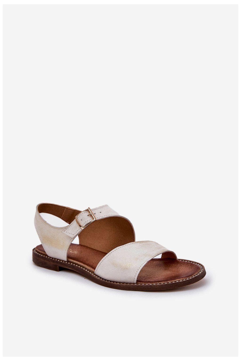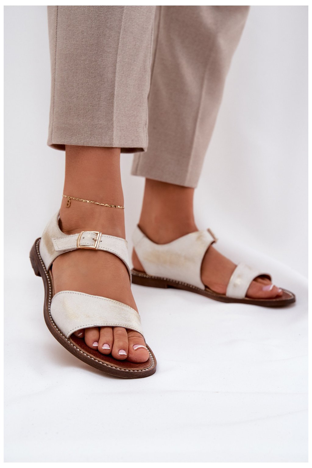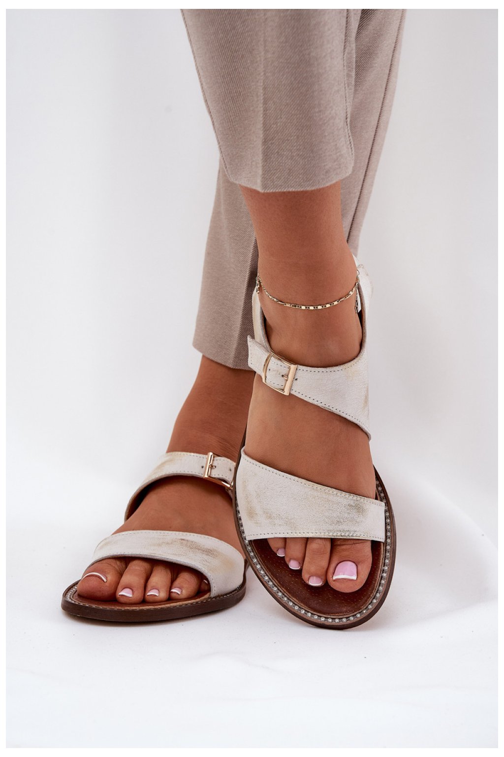 Dámské sandály vyrobené z přírodní kůže. Vyznačují se plochým podpatkem a uzavíráním na nastavitelný popruh se sponou. Kožená stélka zaručuje pohodlí při nošení, což je činí skvělou volbou na horké dny. Podrážka zdobená cirkony přidává módní charakter. Tento model by měl být součástí tvé letní garderóby!