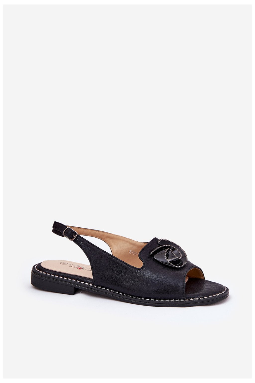 Lesklé dámské sandály značky S.Barski, vyrobené z ekologické kůže, které spojují eleganci s pohodlím. Umístěné na plochém podpatku, poskytují pohodlí po celý den. Zapínají se na přezku s nastavitelným řemínkem, umožňujícím perfektní přizpůsobení noze. Vepředu ozdoba, která botám dodává jemný šarm. Vložka Comfort Shoes zaručuje pohodlí a správnou tlumení. Tyto elegantní sandály budou skvělou volbou na letní výlety a formální události.