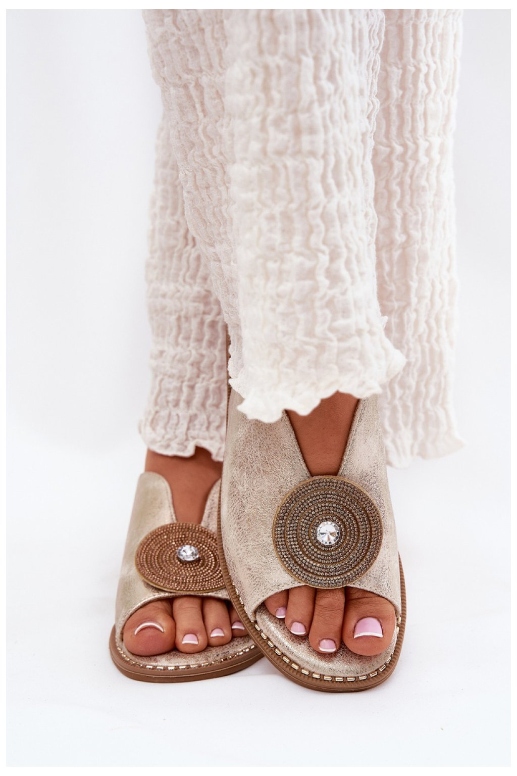 Dámské sandály z ekokůže od značky S.Barski. Umístěné na ploché podrážce, která spojuje pohodlí s elegancí. Vepředu ozdoba, která dodává výjimečný charakter. Kožená vložka Comfort Shoes zajišťuje pohodlí po celý den s dostatečnou tlumení. Zapínají se na sponu s nastavitelným páskem, což zaručuje ideální přizpůsobení noze. Ideální na teplé dny, tyto sandály budou skvělou volbou pro různé letní styly.