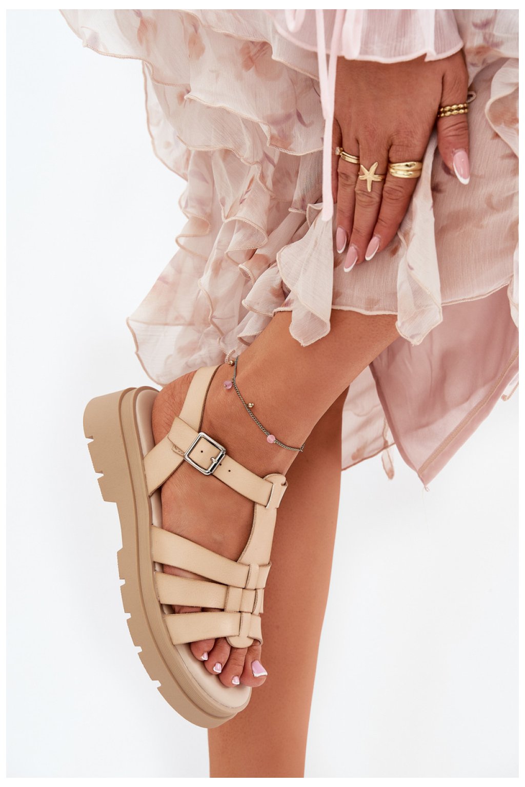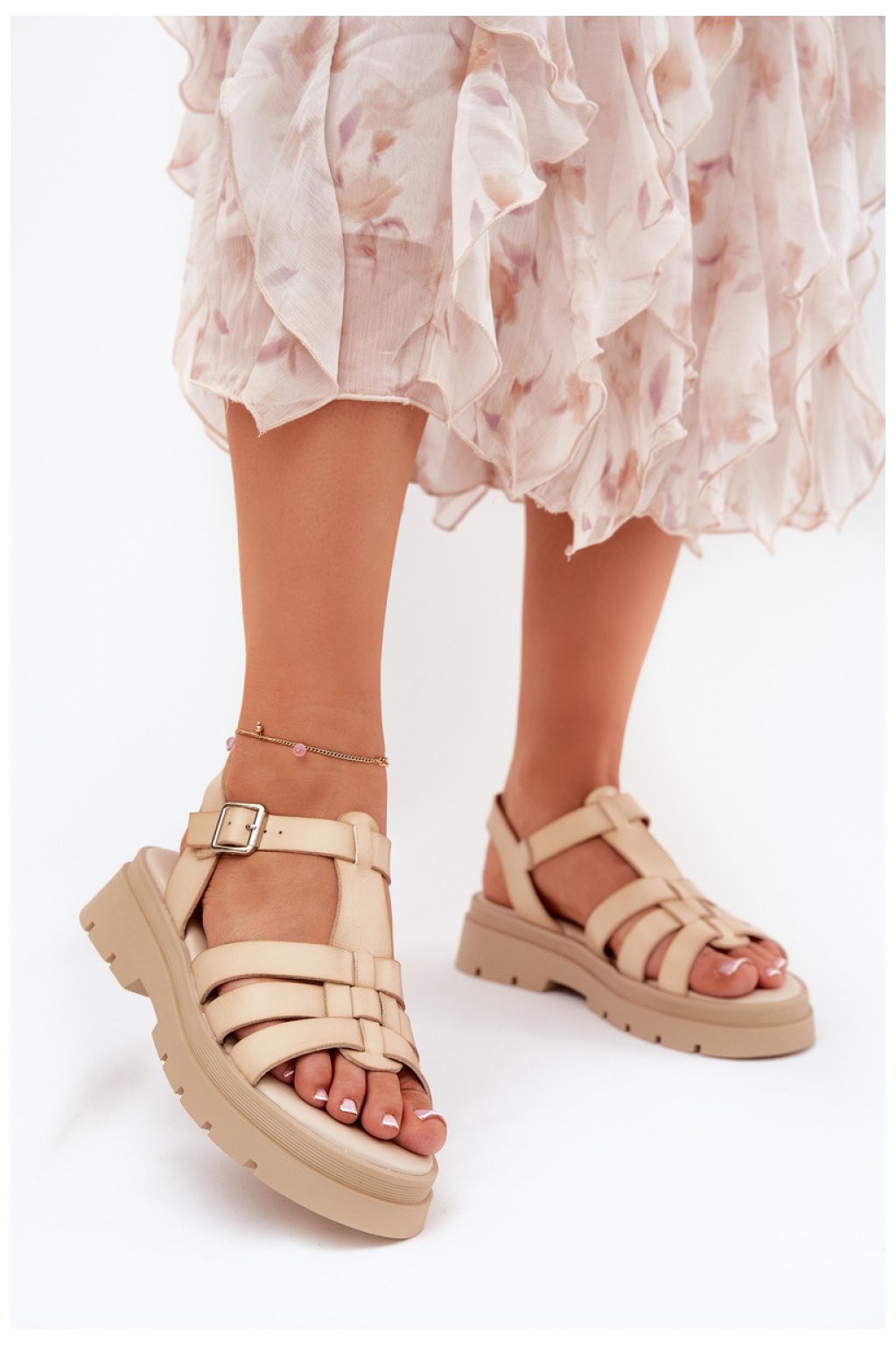 Dámské sandály vyrobené z eko kůže. Umístěné na platformě, spojují pohodlí s módním vzhledem. Zapínají se na nastavitelný popruh s přezkou, což umožňuje ideální přizpůsobení noze. V přední části jsou popruhy a měkká vložka zajistí pohodlí po celý den. Klasický střih dělá tyto sandály skvělou volbou pro mnoho letních outfitů.