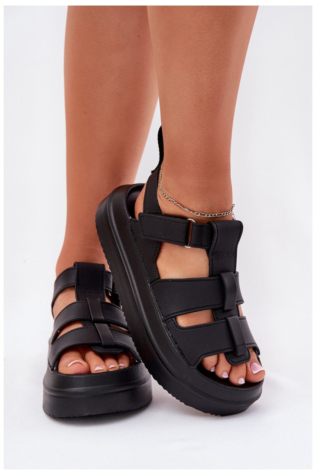 Dámské sandály na platformě, která jemně zdvihne postavu. Jejich lehká pěnová podrážka poskytuje pohodlí a pohodlí po celý den. Zapínání na suchý zip umožňuje snadné přizpůsobení noze a zaručuje stabilitu. Tyto sandály se skvěle hodí do každodenní letní stylizace.