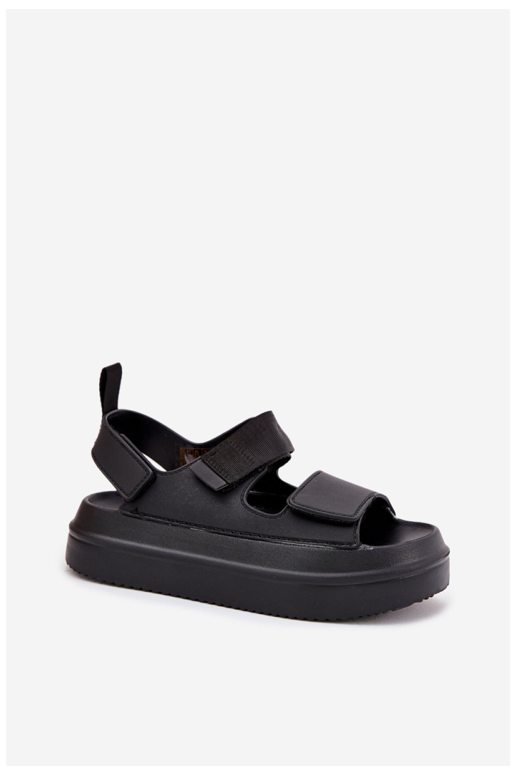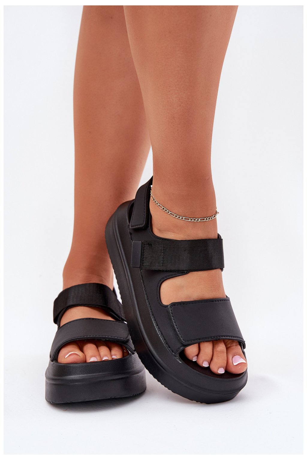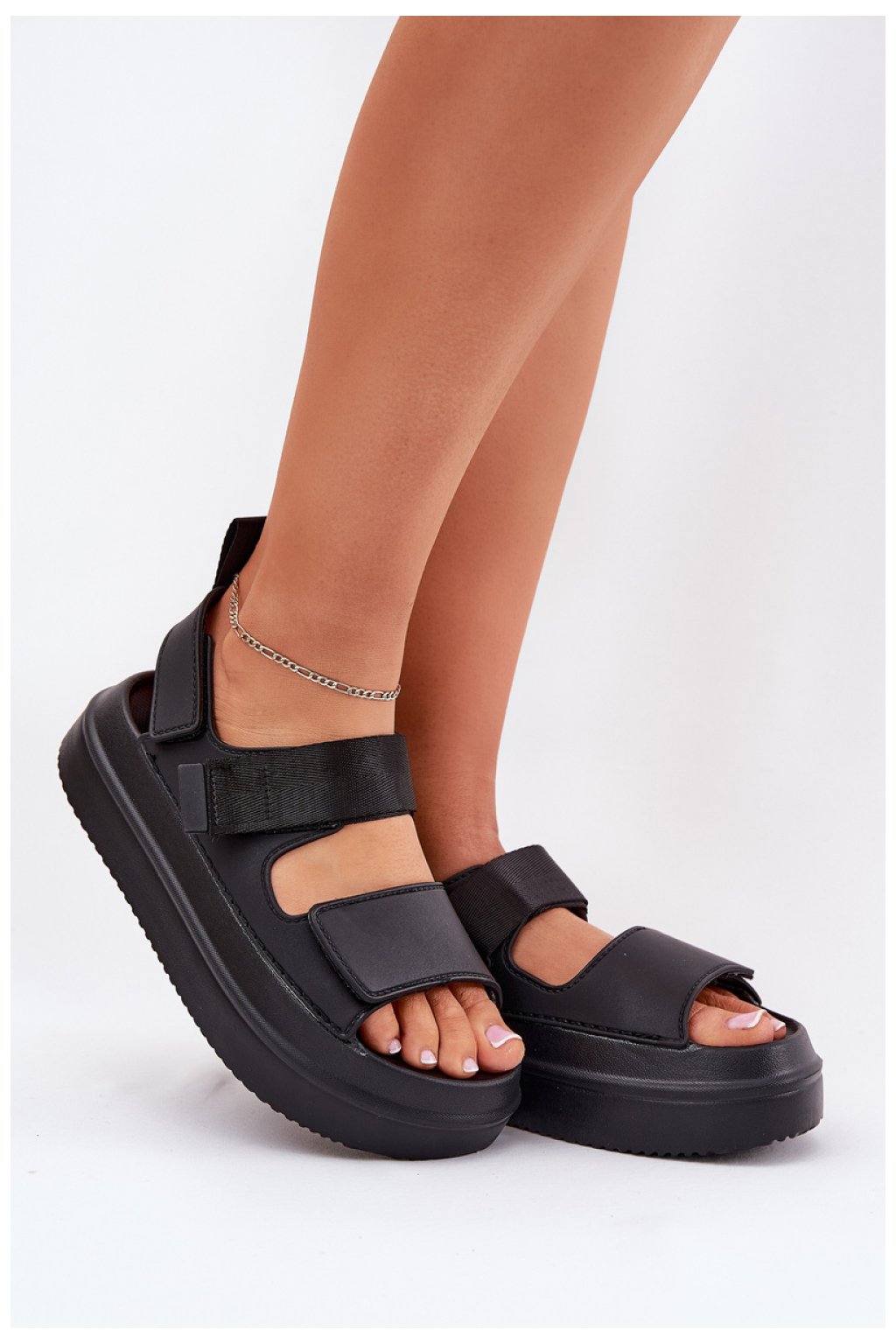 Dámské sandály z ekokůže jsou skvělým návrhem na teplé dny. Umístěné na platformě, která jemně zdvihne postavu. Model se zapíná dvěma suchými zipy vpředu a jedním vzadu, což zaručuje ideální přizpůsobení noze. Tyto sandály budou skvělou volbou pro mnoho letních stylizací.