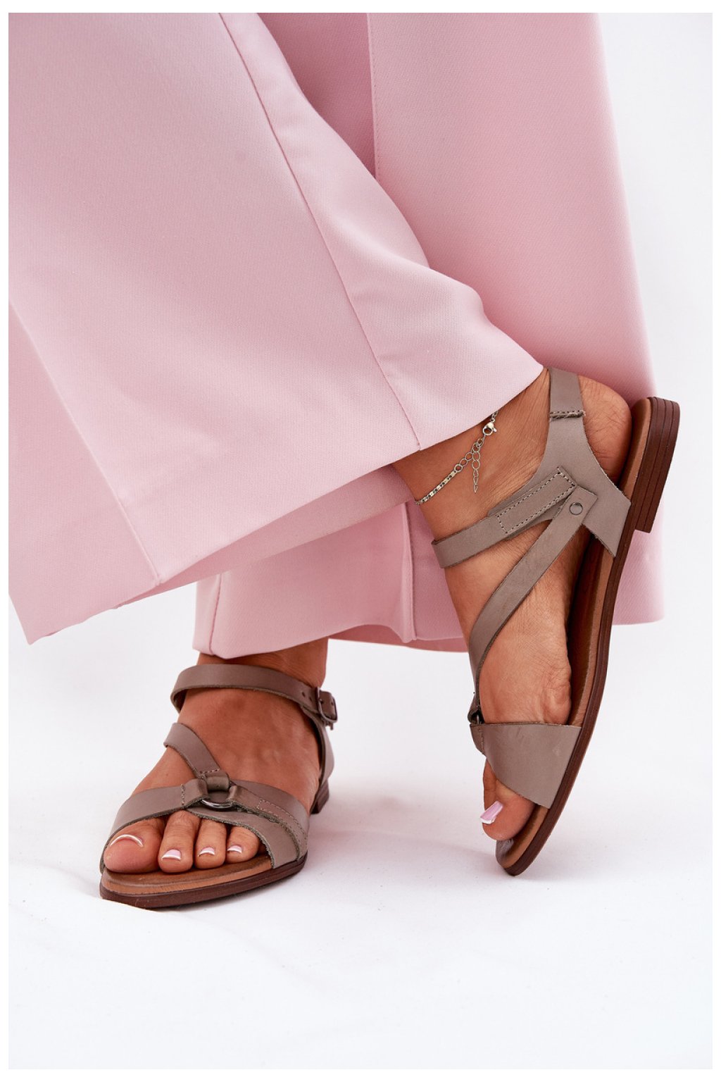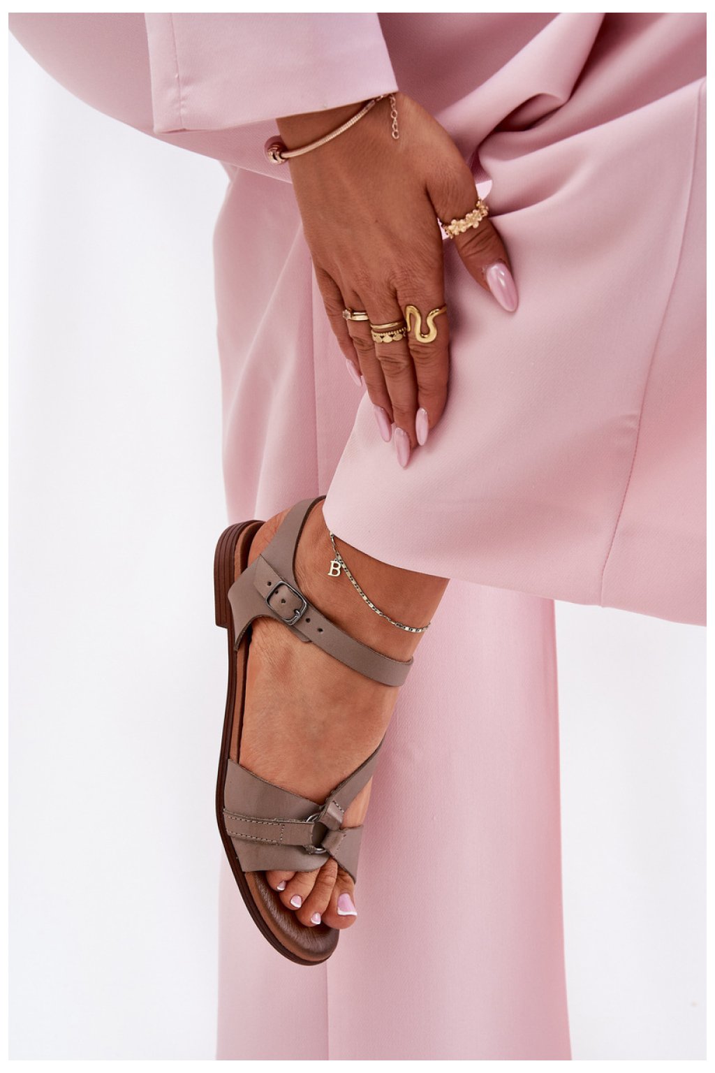 Dámské sandály vyrobené z přírodní kůže. Umístěné na ploché podrážce. Zapínání pomocí nastavitelného popruhu s přezkou. Kožená stélka zajistí pohodlí během nošení. Ideální na horké dny. Určitě byste je měli mít ve své letní garderobě!