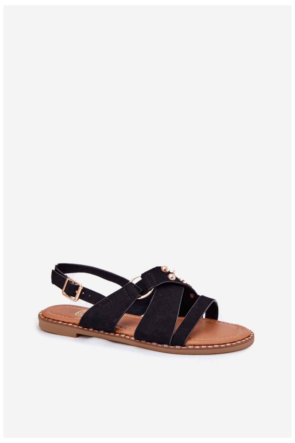 Dámské sandály z ekokože jsou stylovým návrhem na teplé dny. Plochý podpatek poskytuje pohodlí každým krokem a ozdobné zlaté hřebíčky jim dodávají výjimečný charakter. Zapínání na přezku s nastavitelným páskem se ideálně přizpůsobí noze, zaručují jistotu a stabilitu během chůze. Skvěle se hodí k denním stylizacím i na elegantnější příležitosti, skvěle ladí s šaty, sukněmi nebo kalhotami v letních outfitcích.