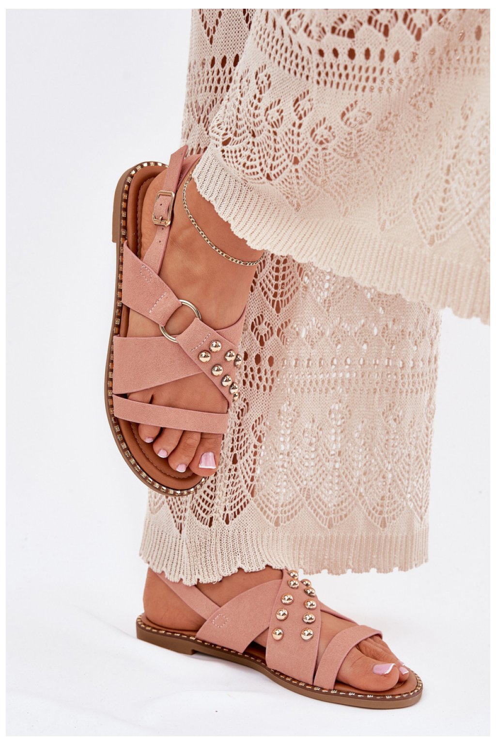 Dámské sandály z ekokože jsou stylovým návrhem na teplé dny. Plochý podpatek zajistí pohodlí každý krok, a ozdobné zlaté nýty jim dodávají jedinečný charakter. Zapínají se na sponu s nastavitelným řemínkem, dokonale se přizpůsobují noze, zaručují jistotu a stabilitu při chůzi. Skvěle se hodí jak do každodenních outfitů, tak na elegantnější příležitosti, skvěle ladí s šaty, sukněmi nebo kalhotami v letních kombinacích.