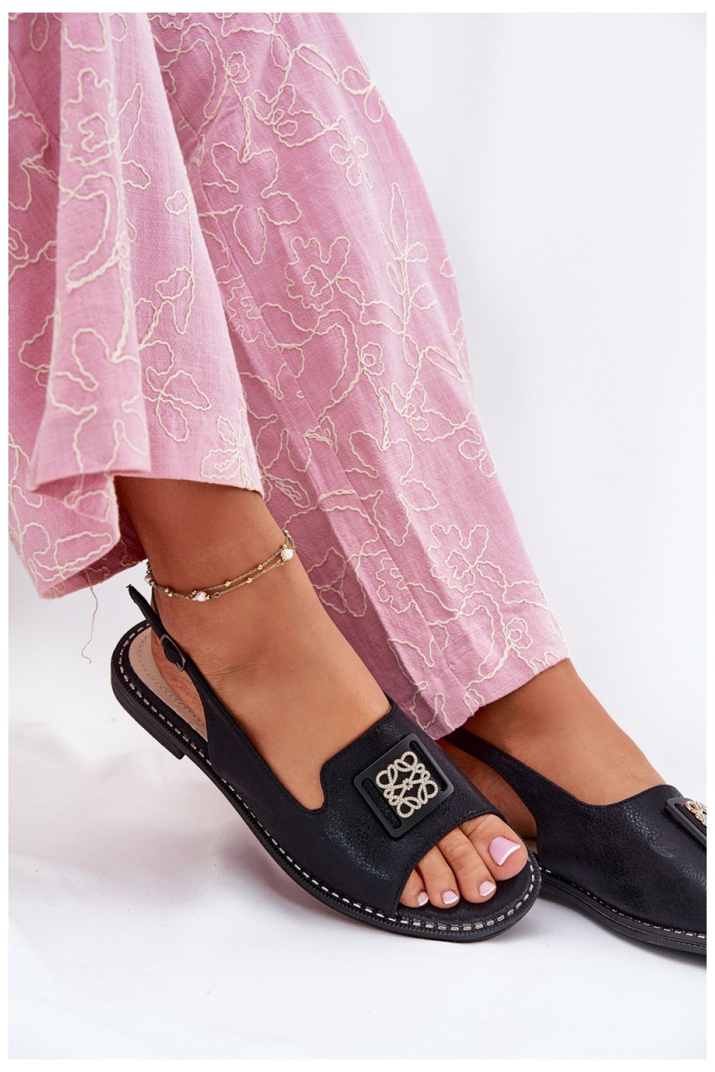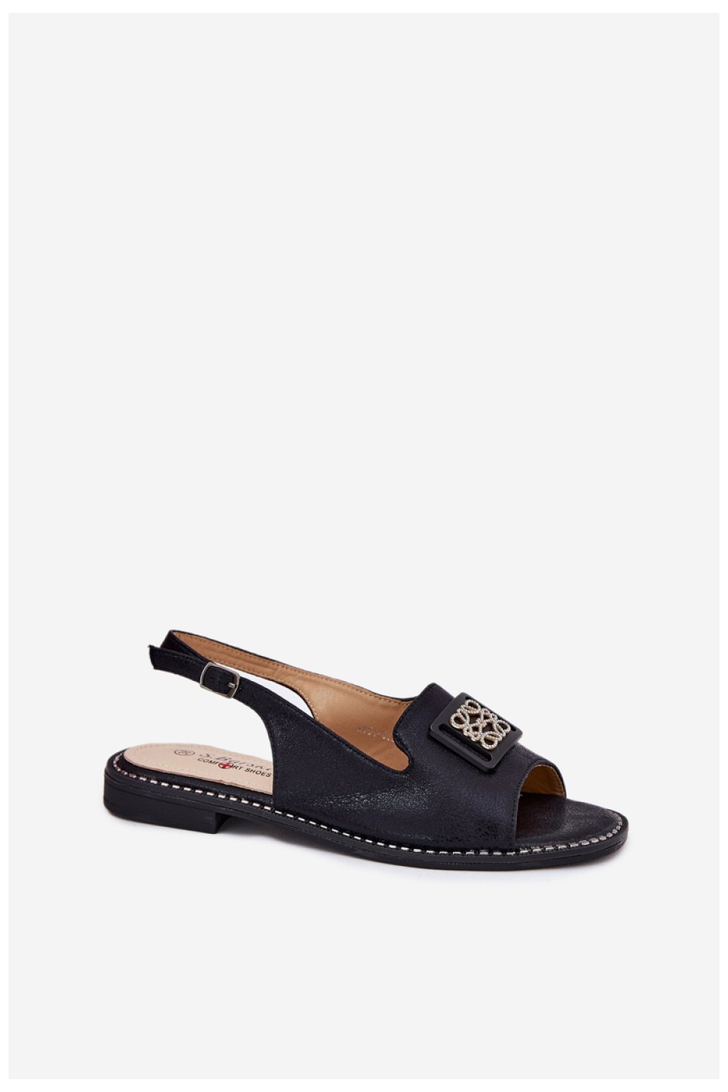 Dámské sandály vyrobené z ekokože jsou elegantní volbou na letní dny. S plochým podpatkem poskytují pohodlí a stabilitu po celý den. Zapínají se na přezku s nastavitelným páskem, což umožňuje ideální přizpůsobení noze. Vložka z přírodní kůže zajistí pohodlí každým krokem. Vepředu je ozdobný detail, který přidává jedinečný šarm. Tyto sandály jsou skvělou volbou, kombinující elegantní střih s funkcionalitou.