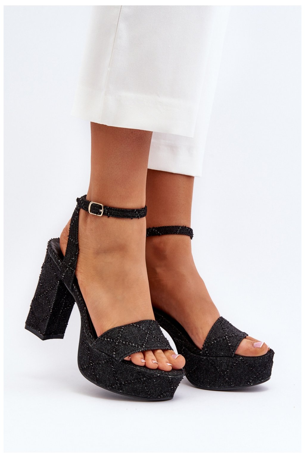 Módní dámské sandály jsou vyrobeny z textilního materiálu. Podpatek na jehlovém podpatku jim dodává eleganci a výraznost. Zapínají se na nastavitelný pásek s přezkou, který zajišťuje správné přizpůsobení noze. Měkká stélka z ekokůže navíc zaručuje pohodlí i při dlouhodobém nošení. Jsou ideální volbou pro letní dny!