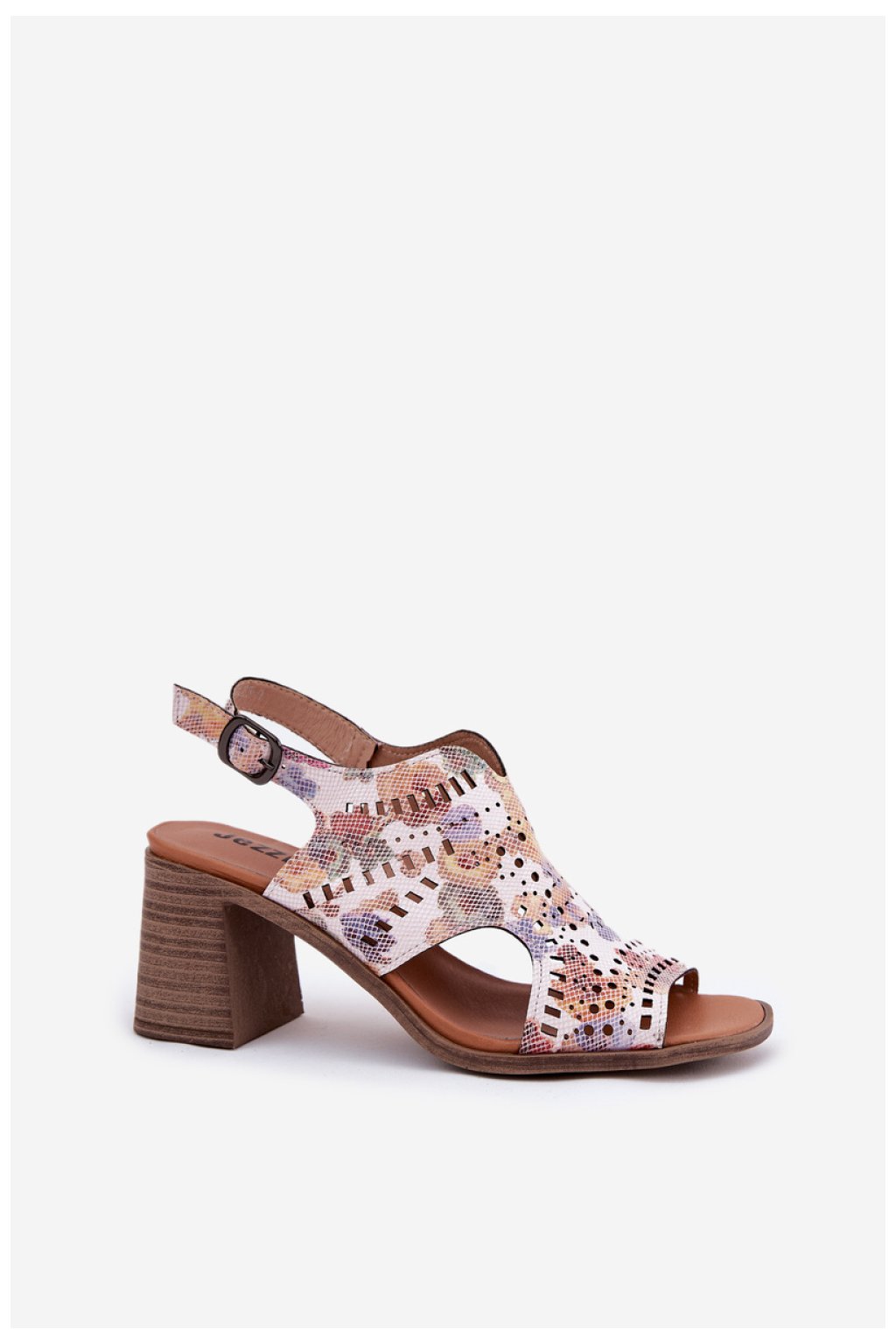 Dámské sandály značky Jezzi. Vyrobené z vysoce kvalitní ekokože. Tento model vyniká dírkovaným svrškem. Umístěné na podpatku ve formě sloupku. Nastavitelný pásek s přezkou umožňuje ideální přizpůsobení noze. Navíc kožená vložka poskytuje další pohodlí a pocit měkkosti. Tyto stylové sandály budou skvělým doplňkem letního outfitu.
