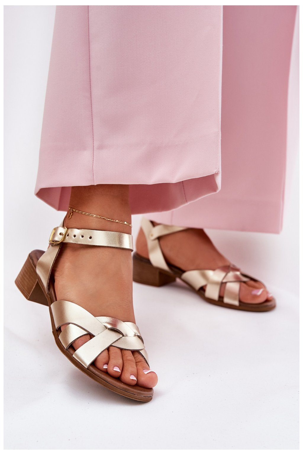 Sandały vyrobené z přírodní kůže jsou elegantní a pohodlnou volbou na teplé dny. Upevněné na nízkém podpatku, zajišťují pohodlí a stabilitu při chůzi. Zapínají se na nastavitelný pásek, což umožňuje dokonalé přizpůsobení k noze. Doprava se kříží pásky. Tyto sandály jsou vynikající volbou na letní dny!